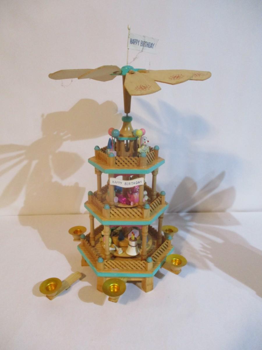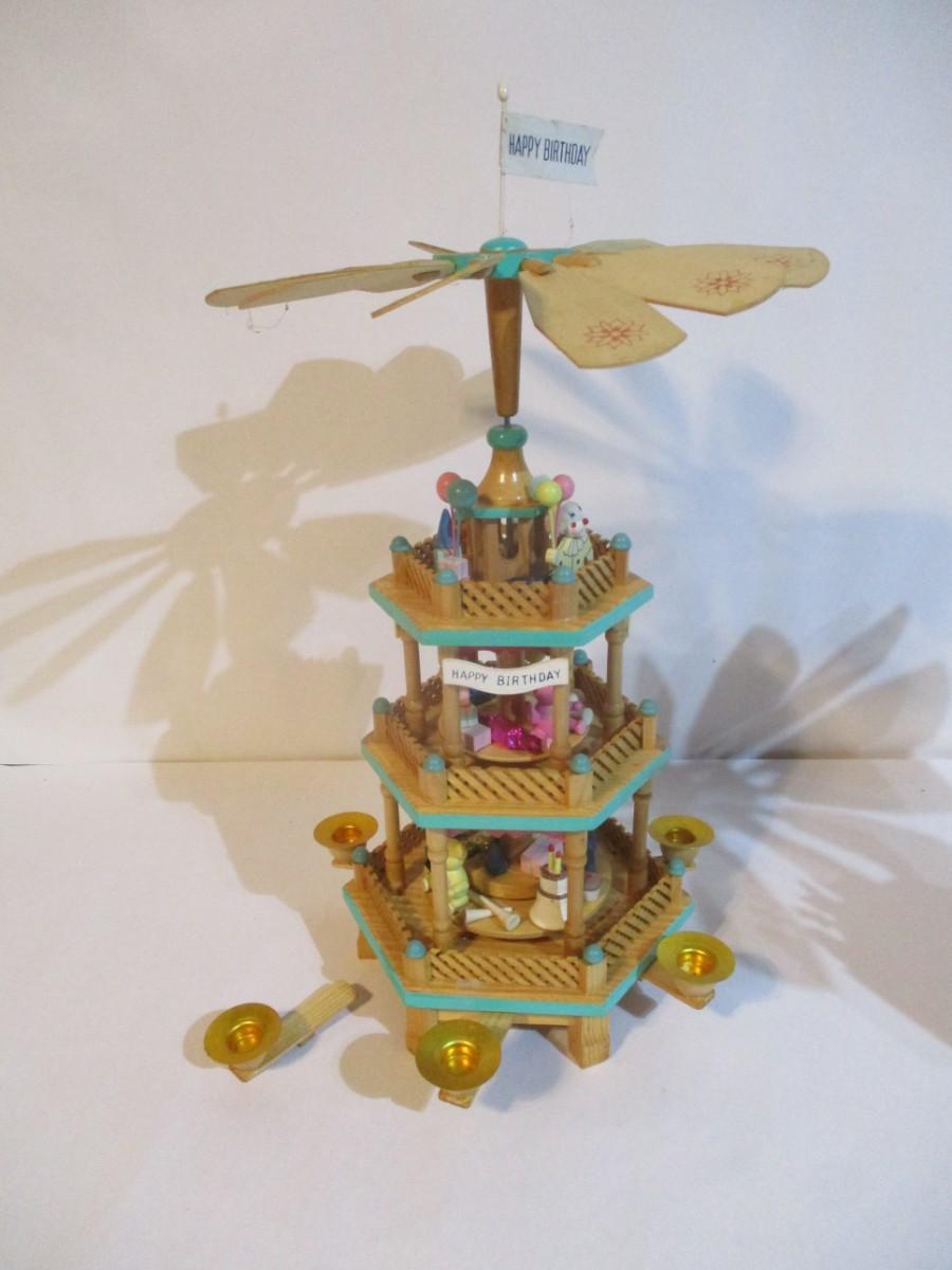 Vintage Happy Birthday Go Round 3 Tier Candle Rotating Carousel