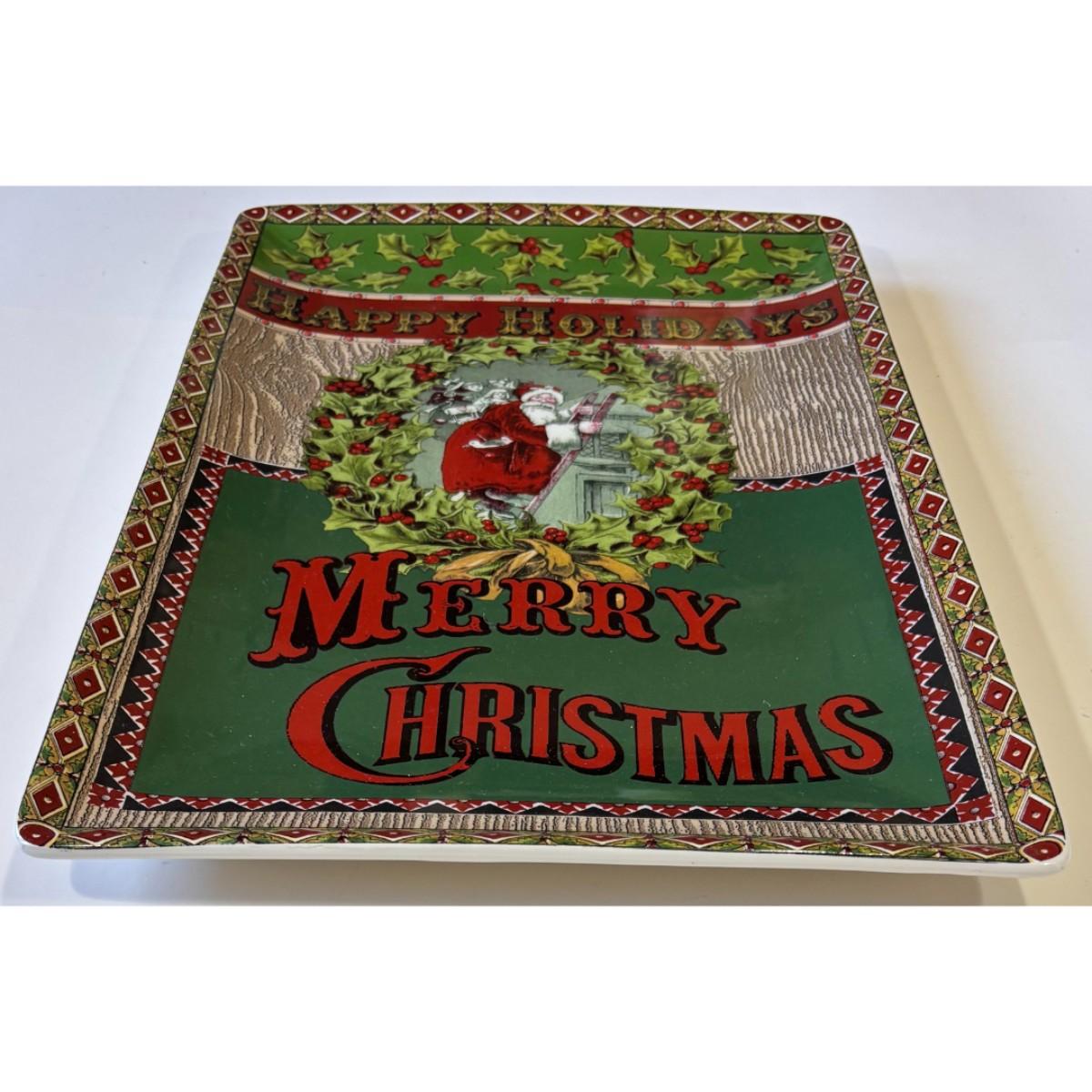Vintage Happy Holidays Merry Christmas Santa Claus World Market Ceramic Platter