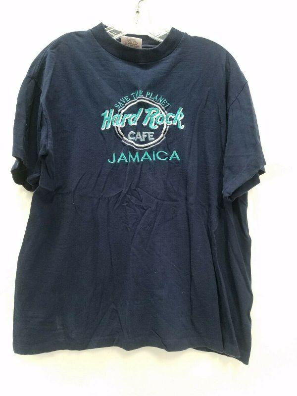 Vintage Hard Rock Cafe JAMAICA Save the Planet Embroidered Youth XL Navy T-Shirt