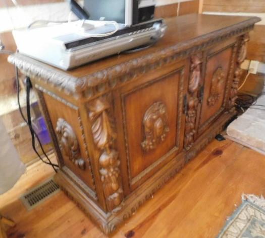 Vintage Hard Wood Cupboard 53"x18"x30" no contents