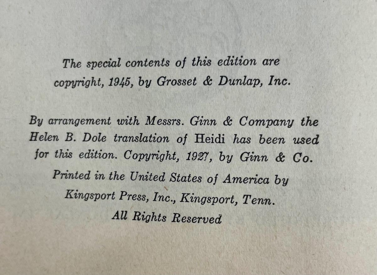 1945 Vintage Hardcover Book: Heidi