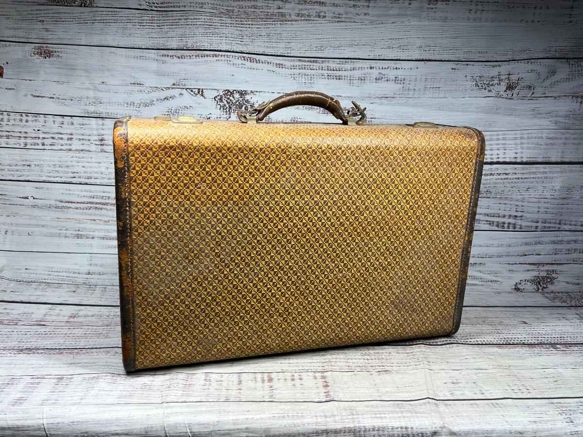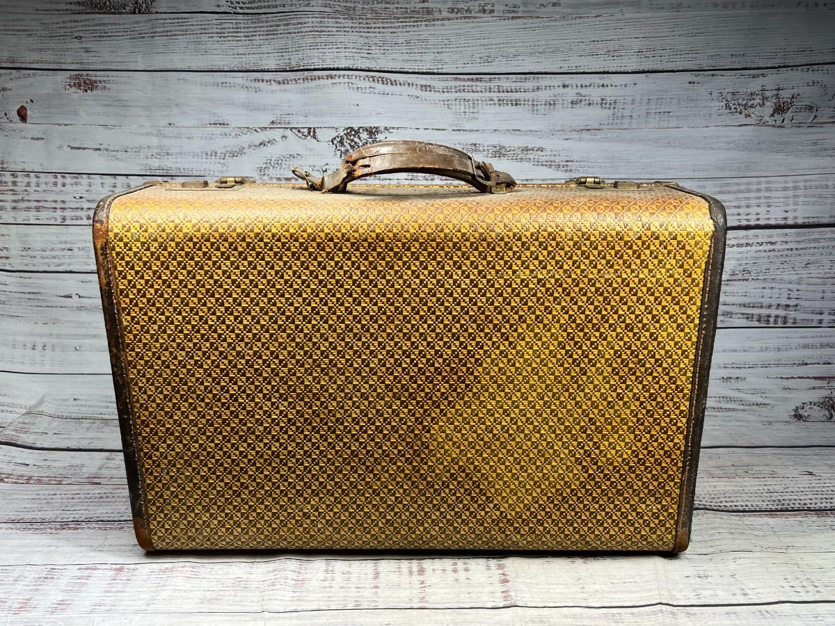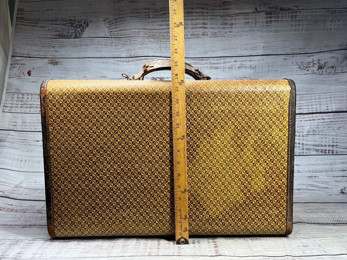 Vintage Hardshell Travel Vacation Suitcase, there is some wear to the suitcase and the handle is starting to come apart. Check pictures for more details and for sizing. Does not come with the key.
