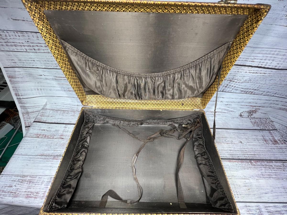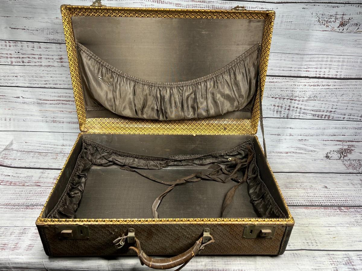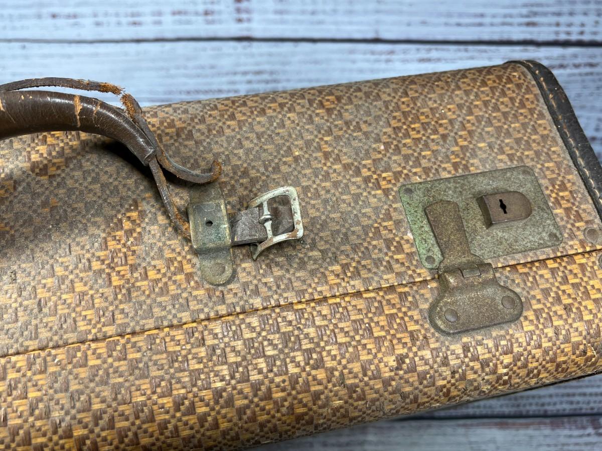 Vintage Hardshell Travel Vacation Suitcase, there is some wear to the suitcase and the handle is starting to come apart. Check pictures for more details and for sizing. Does not come with the key.