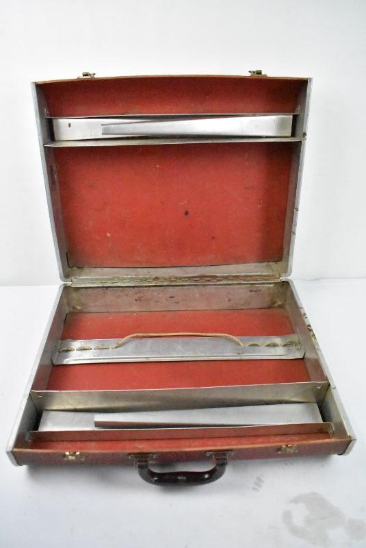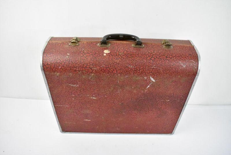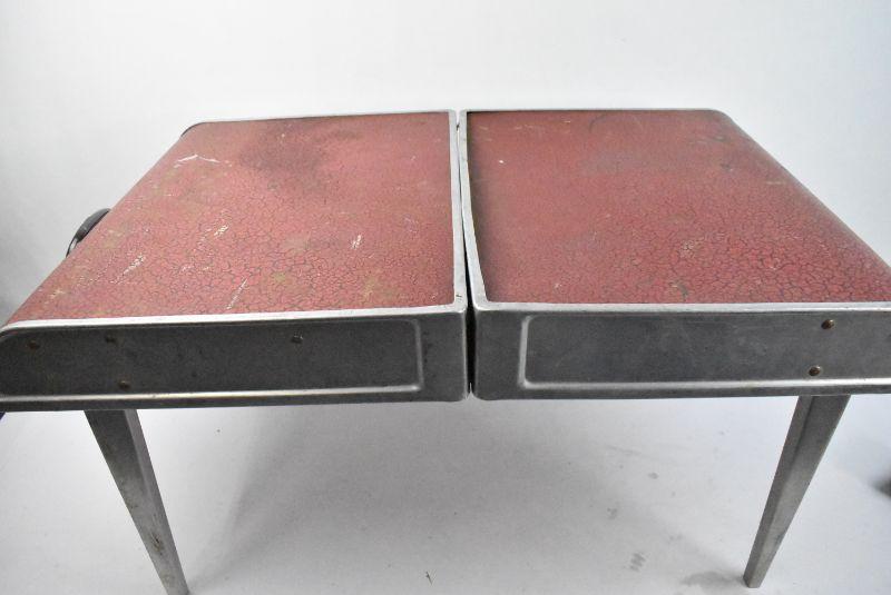 Vintage Hardside Suitcase Table Red/Black/Silver "Snack-Pack All-Luminum"