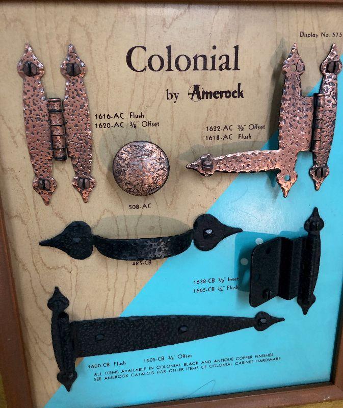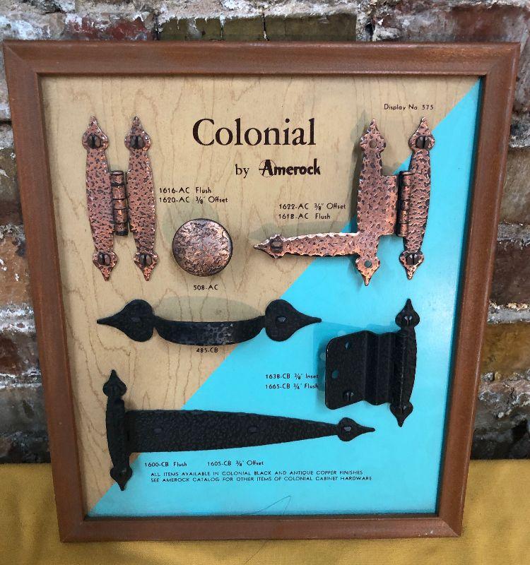 Here is a vintage display of Colonial style hardware from Amerock...A classic piece once found in every hardware store in America...Measures 10 x 12"...