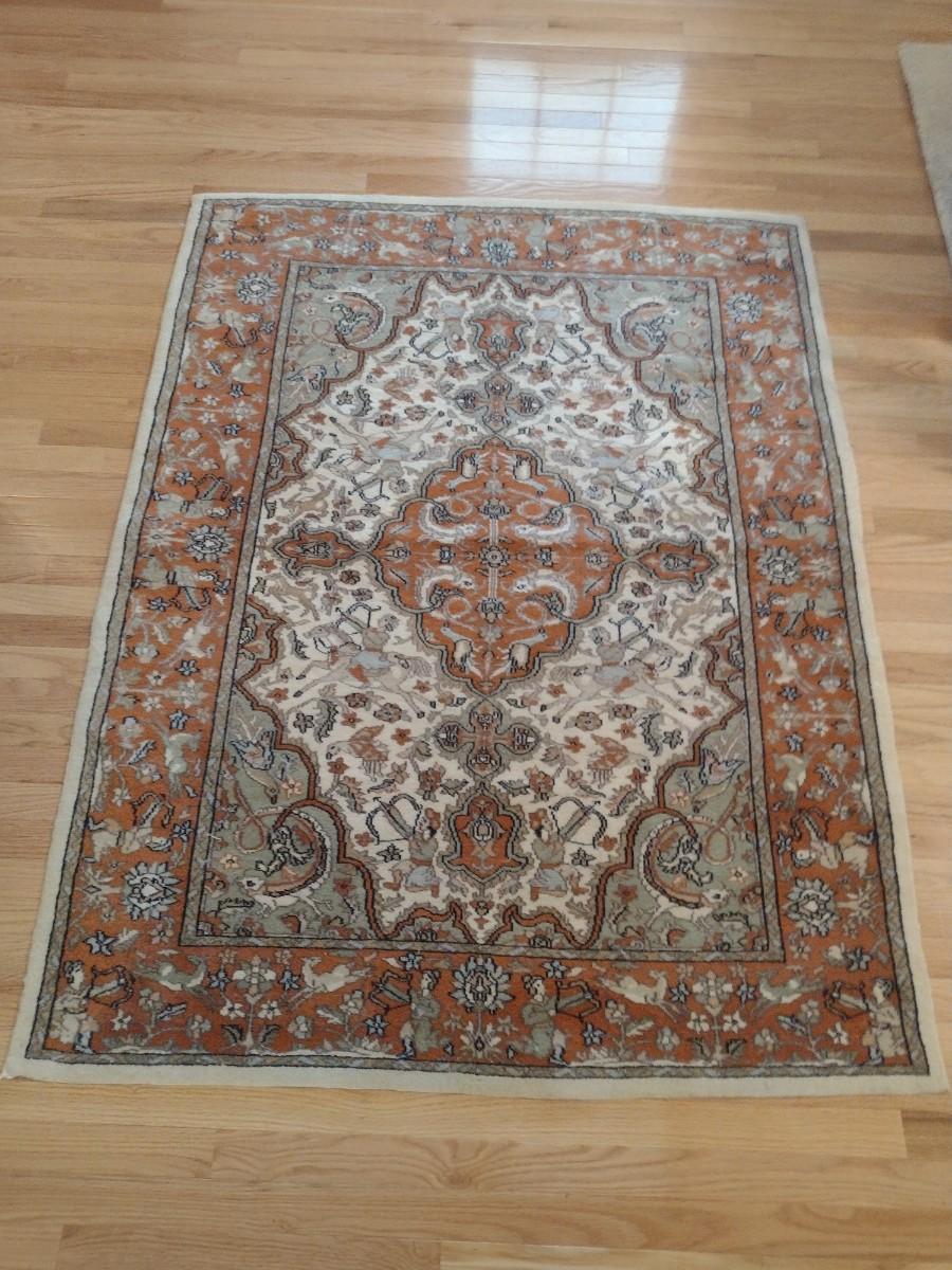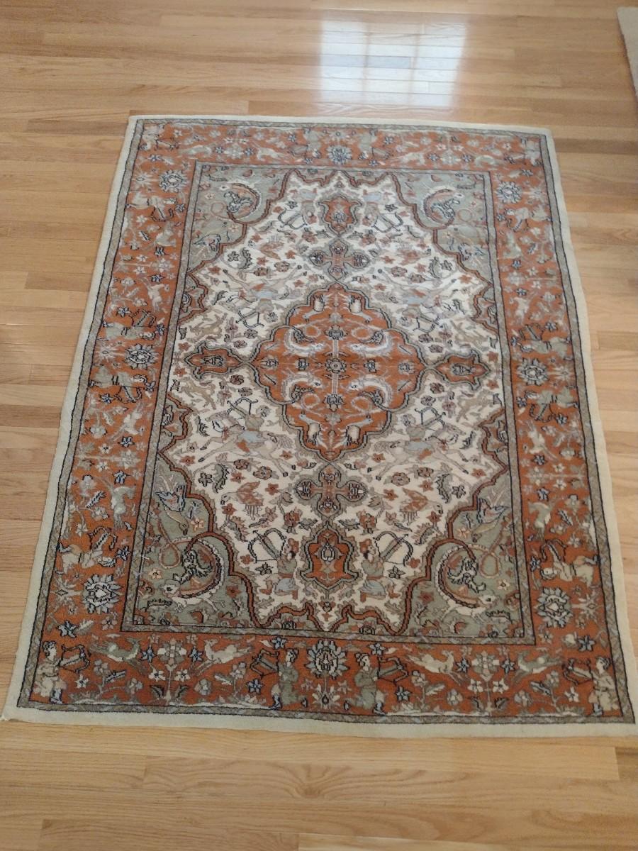 Vintage Hariz Wood Area Rug with Hunter Scene 50"x67"