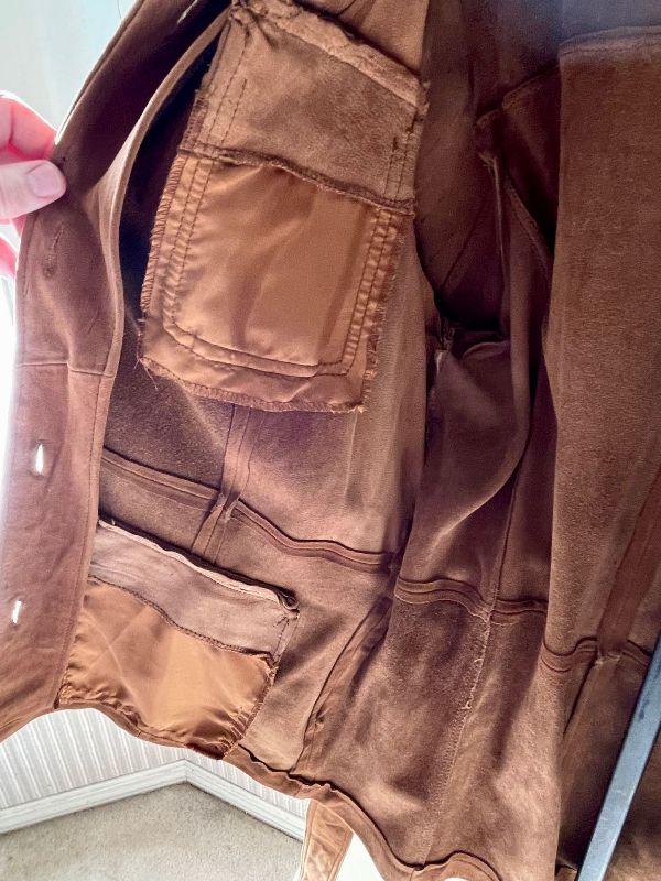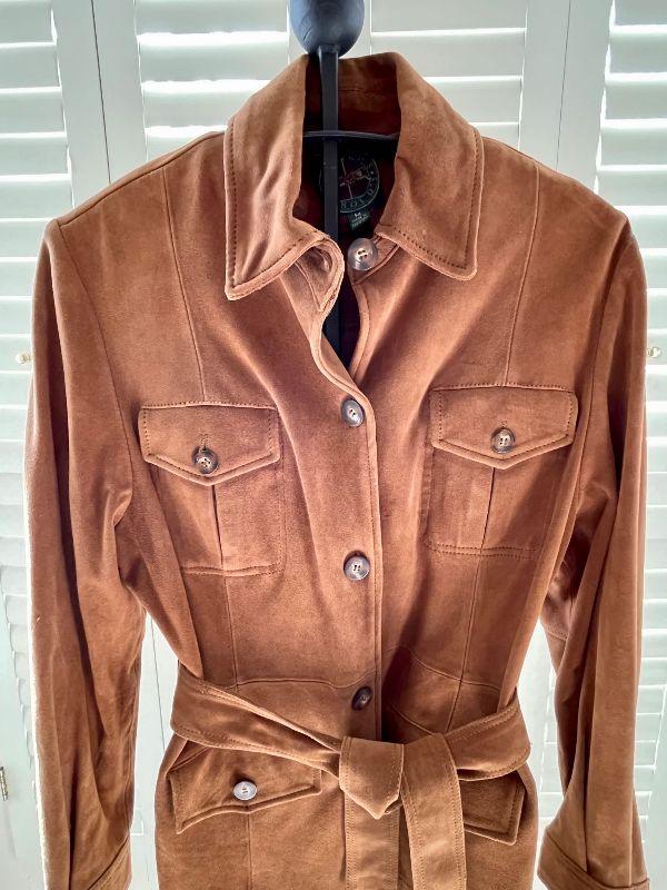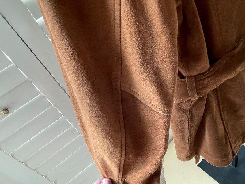 Lovely caramel colored vintage suede coat by Harold's
