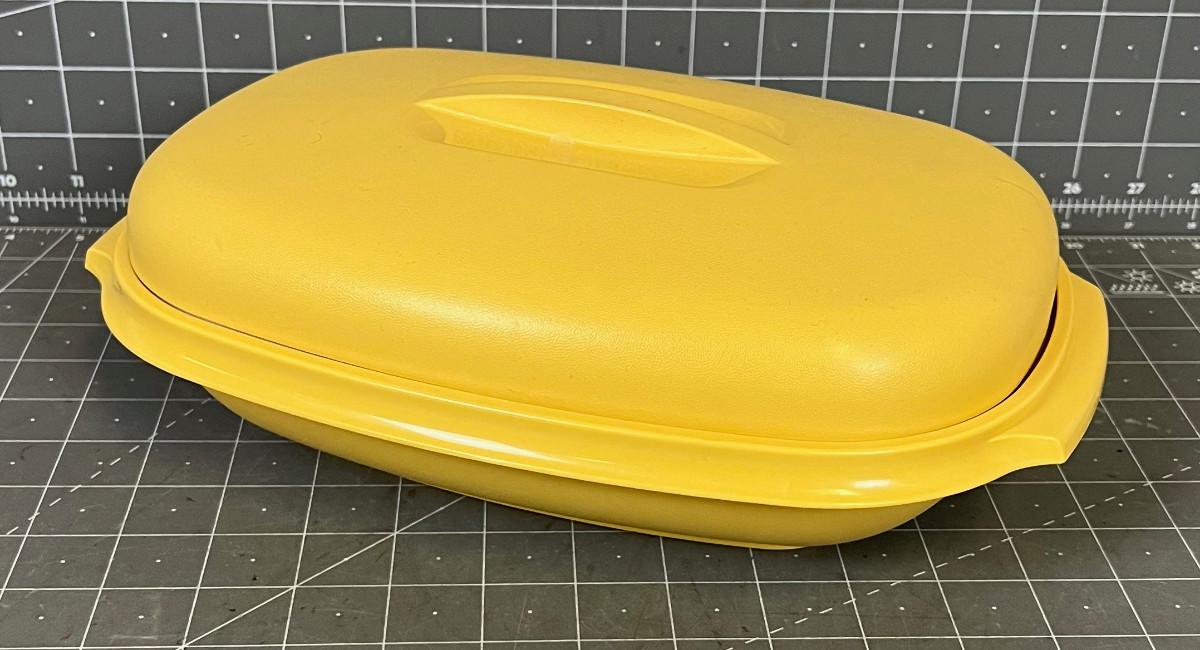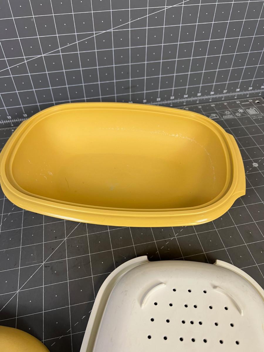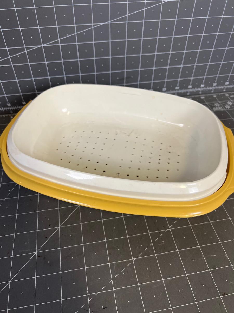 Vintage Harvest Gold Tupperware Dish with Strainer & Lid