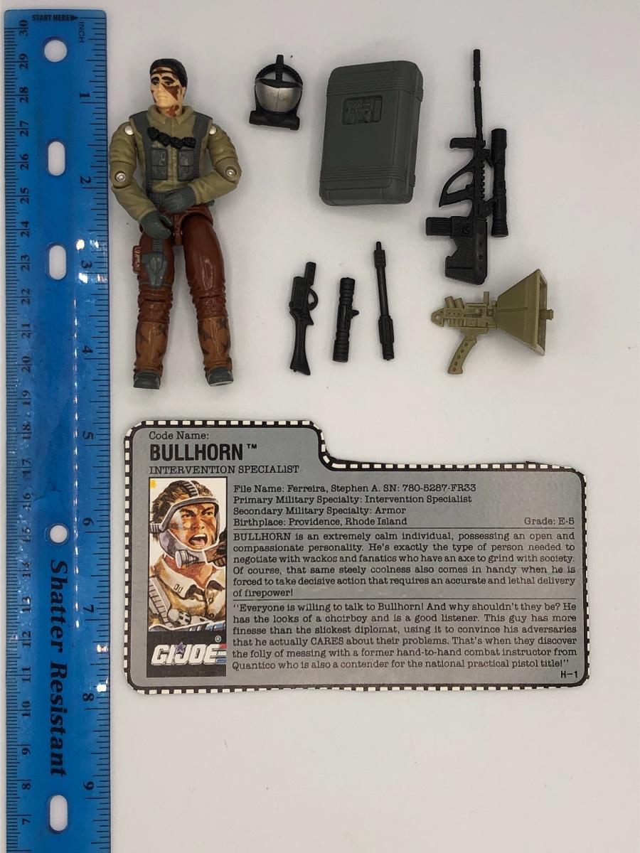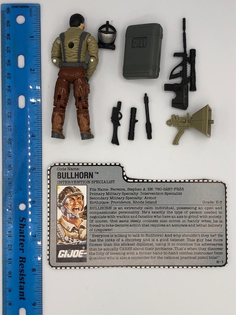 Vintage Hasbro GI Joe 1990 Bullhorn Action Figure, File card, & Accessories 100% Original, Vintage, & Authentic!
