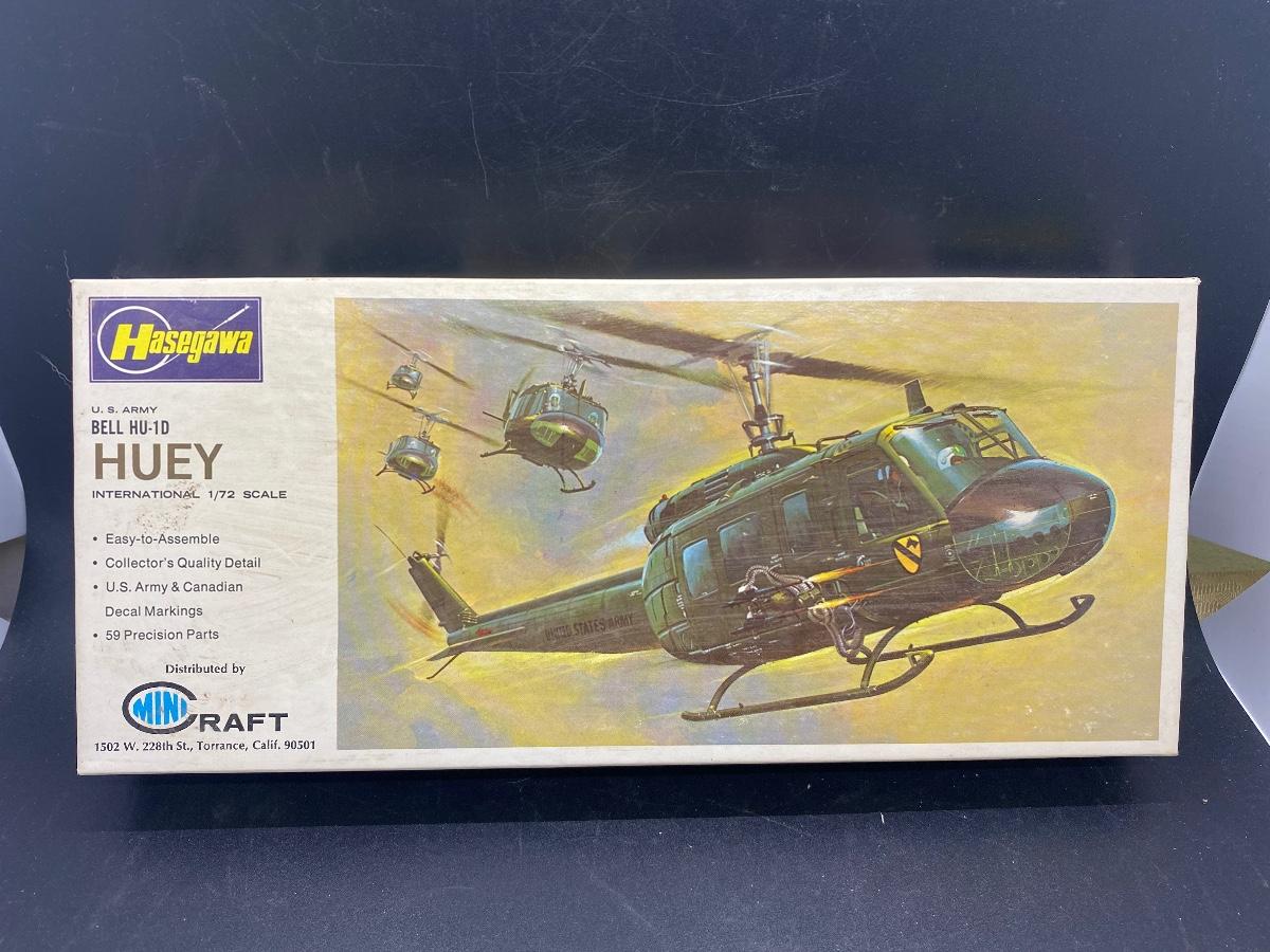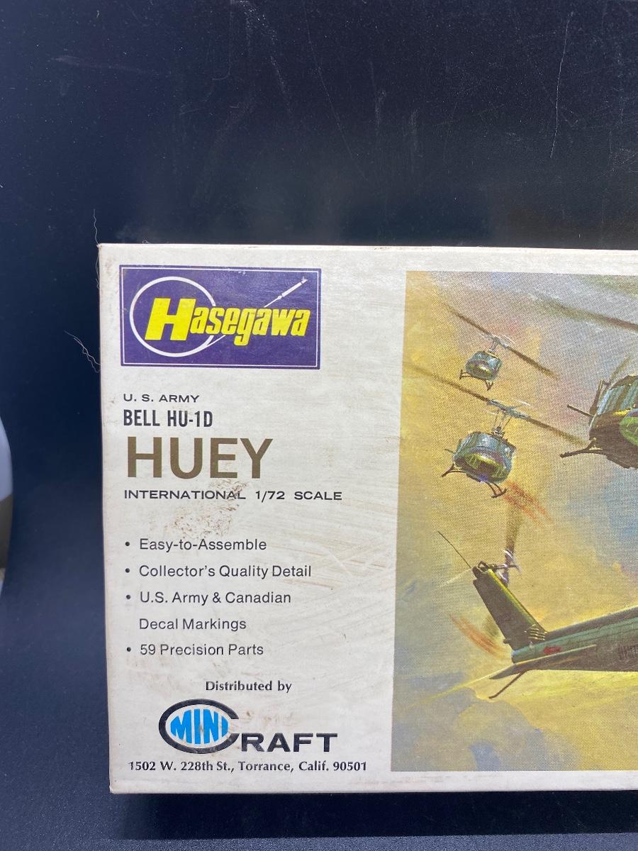 Vintage Hasegawa Bell HU-1D Huey Helicopter Model Kit 1/72 Scale