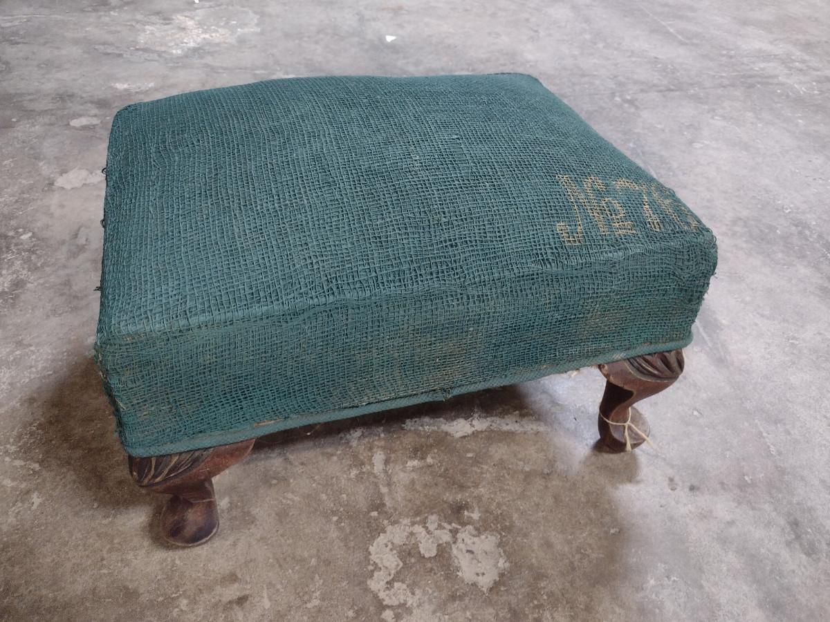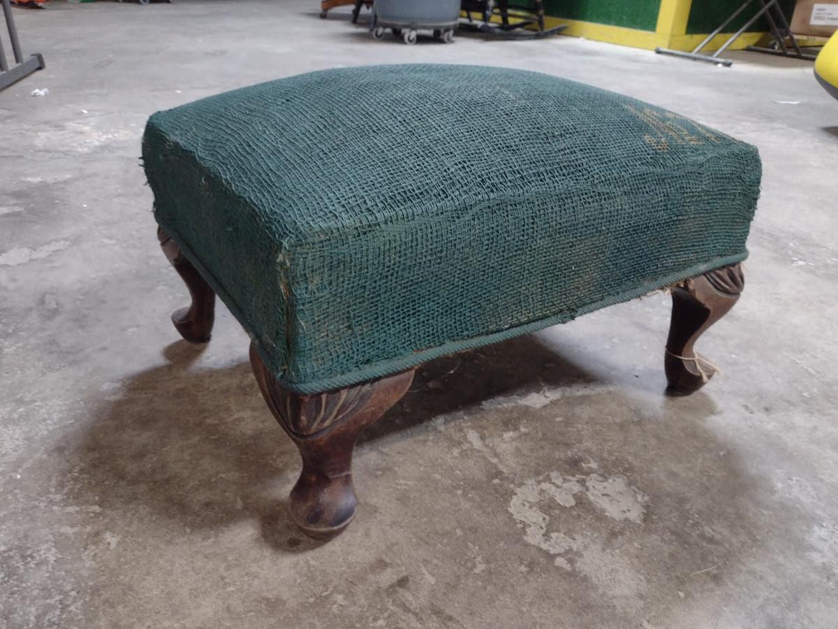 Vintage Hassock with Burlap Style Covering