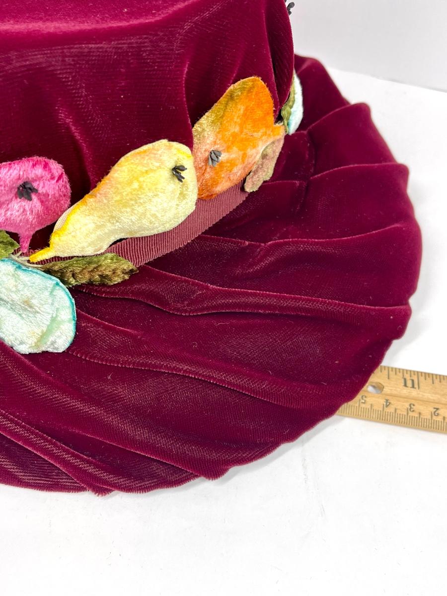 Stunning, magenta velour vintage ladies hat. This is the bees knees! All hats and clothing in this sale are vintage as is this hat, but it’s in such good condition for it’s age! There are a few small issues pictured but overall just a gorgeous piece of fashion history!!