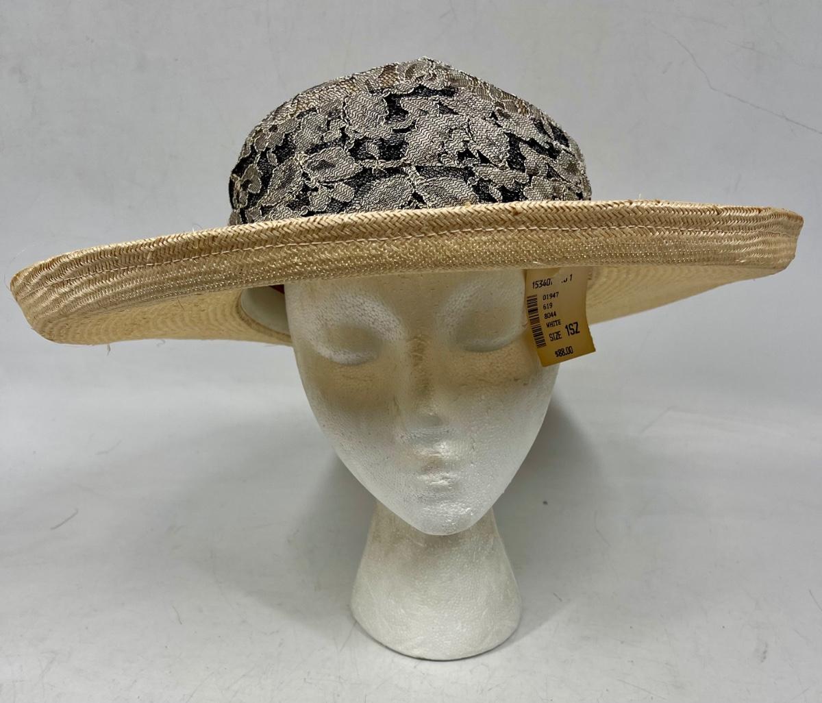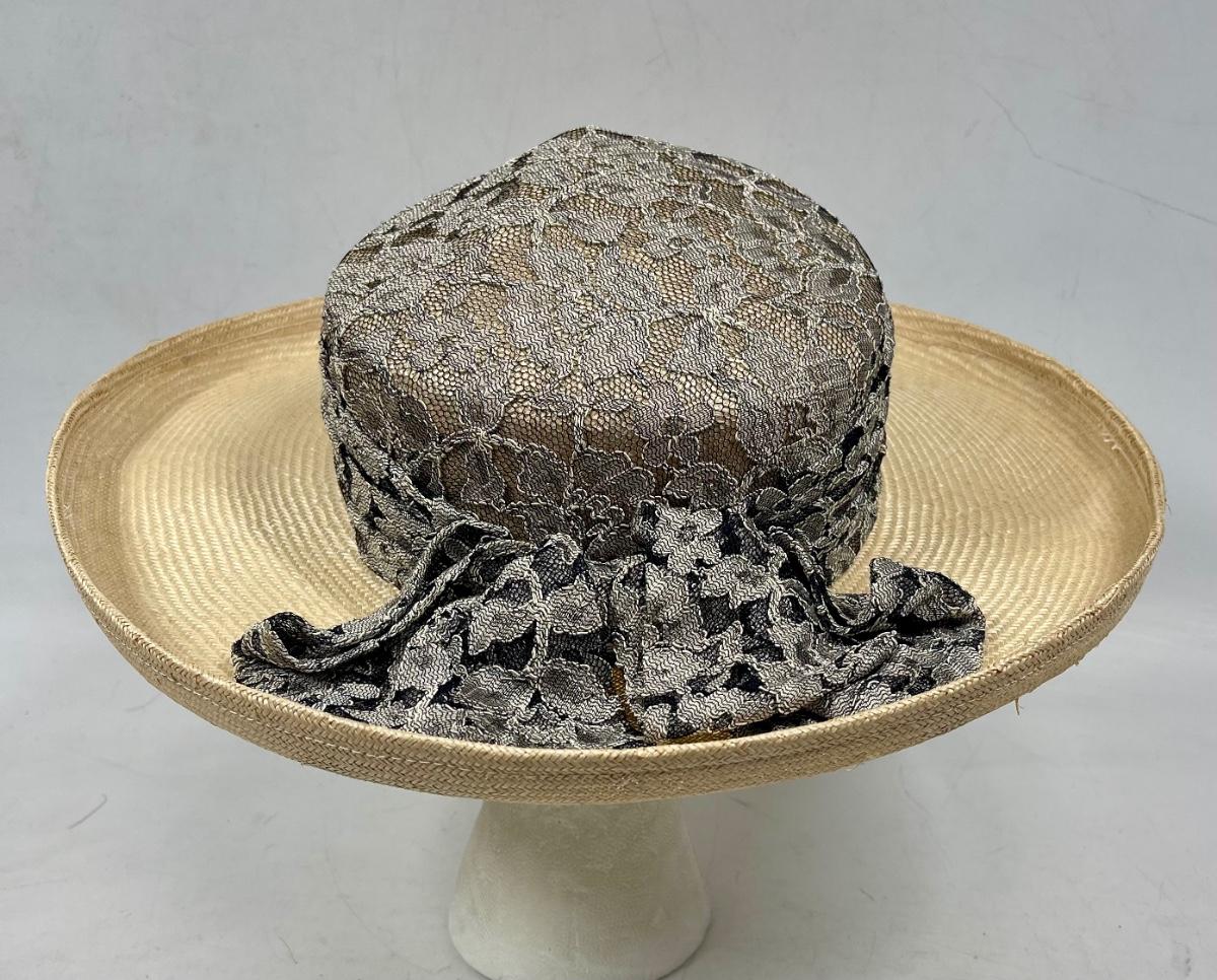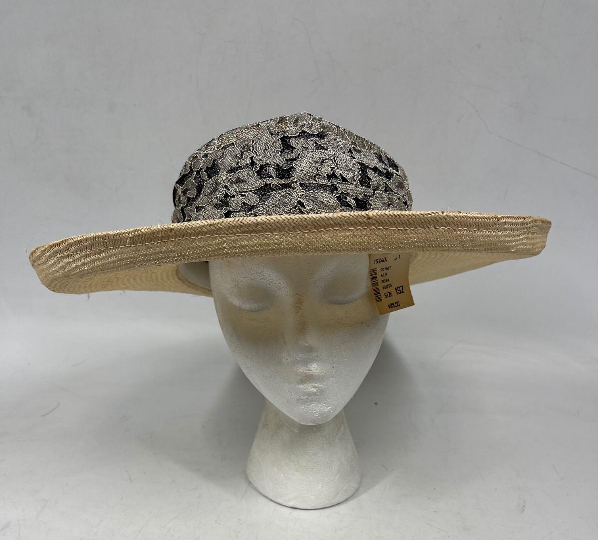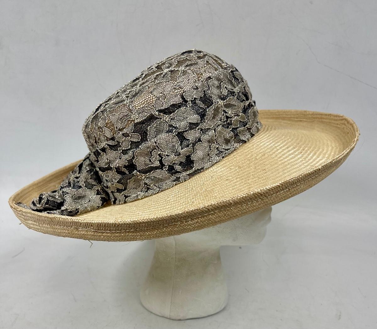 Momentum Vintage Straw Hat with Gray & Black Lace Accent