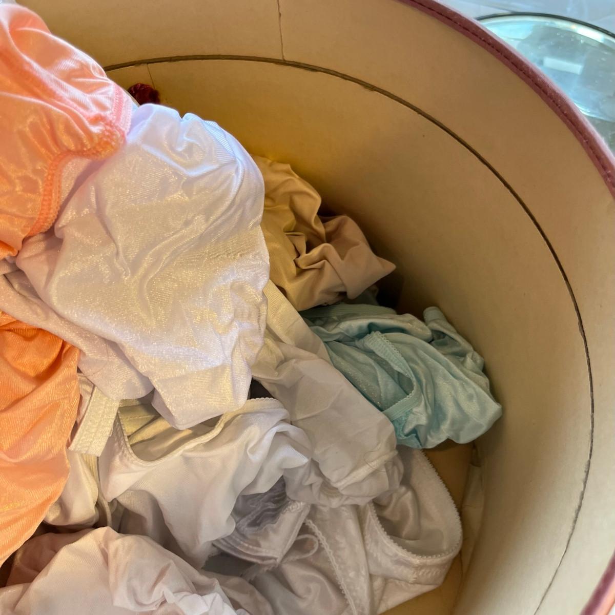 Great vintage style hat box full of ladies undergarments. Undergarments are clean, no stains or damage.