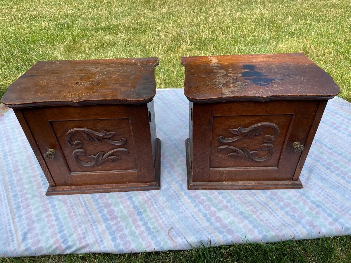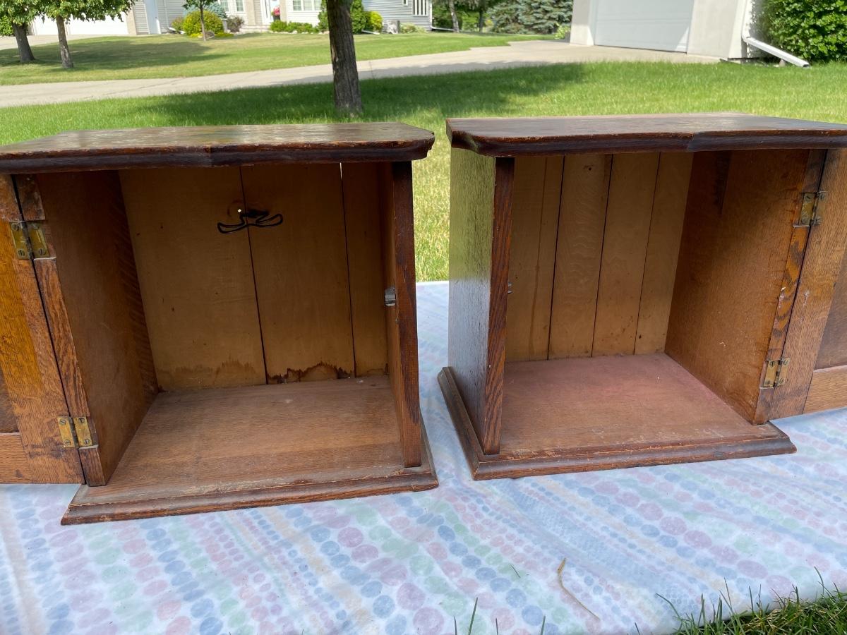 Vintage Hat Storage cabinets. One has hook and the other is missing hook.
