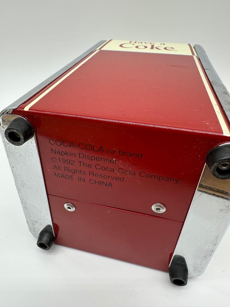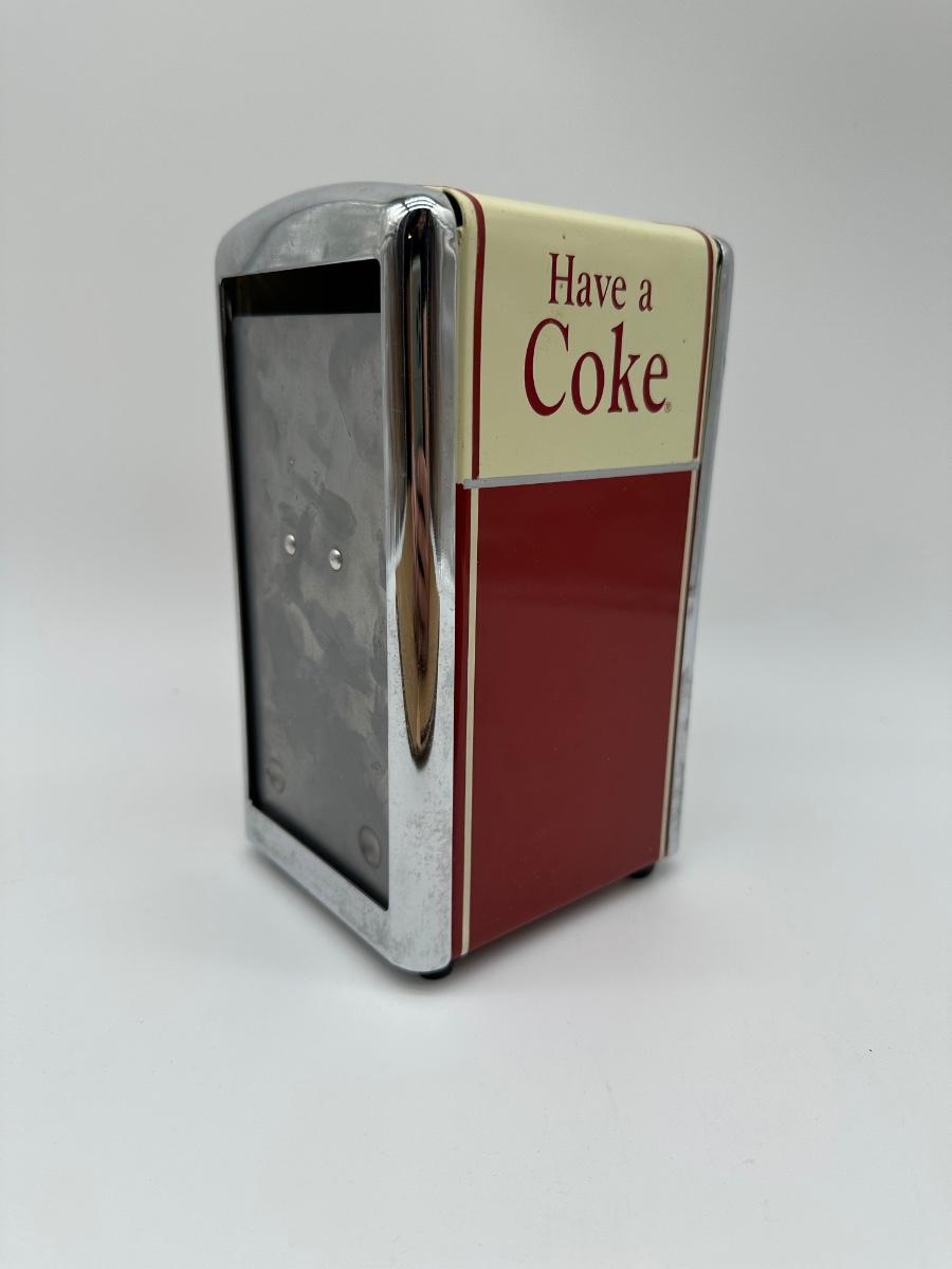 Original Coca-Cola brand napkin dispenser featuring the classic “Have a Coke” slogan in a retro diner design.