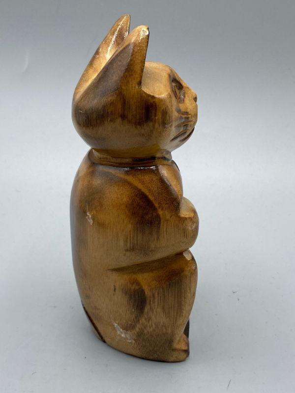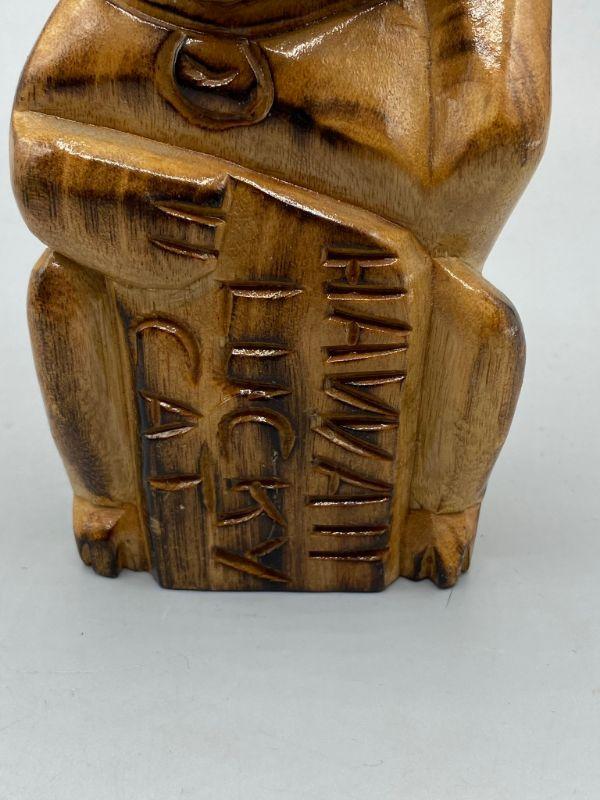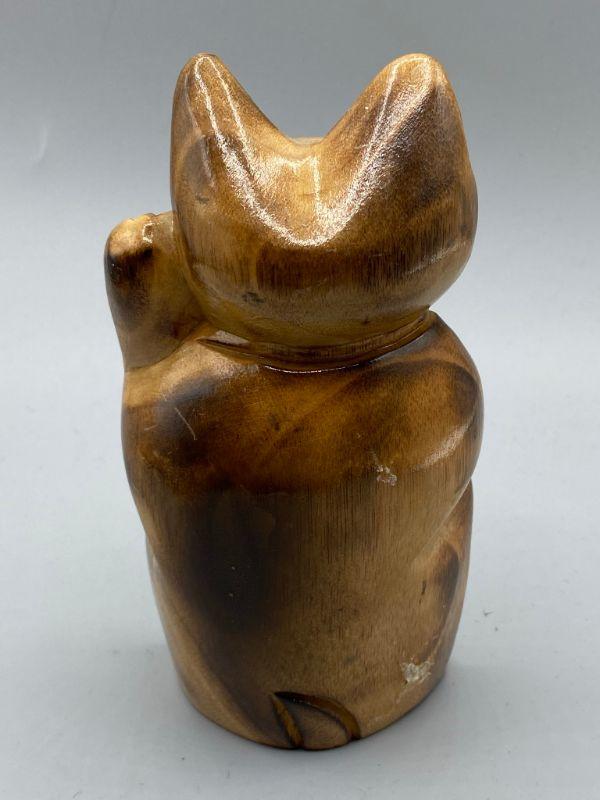 Vintage Hawaii Souvenir Carved Wood Lucky Cat Figurine YD#011-1120-00095