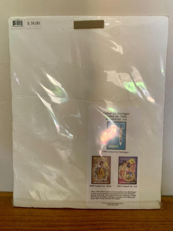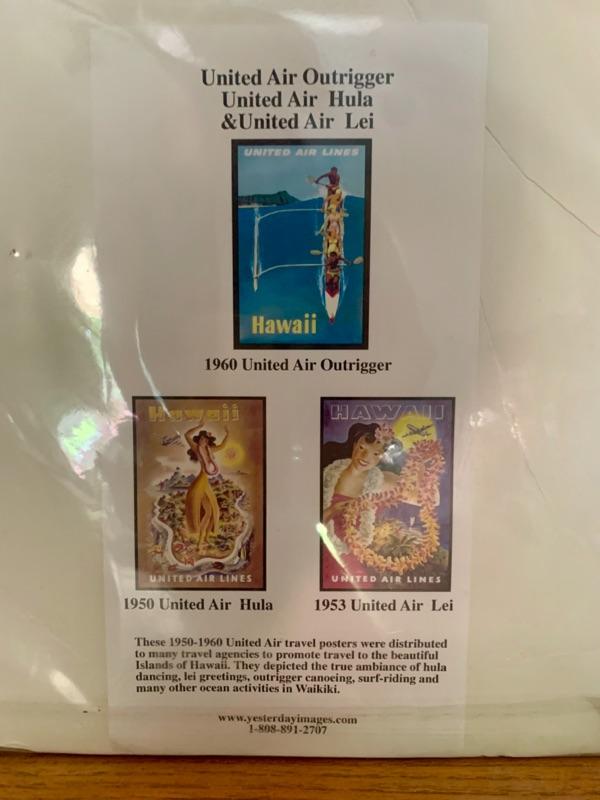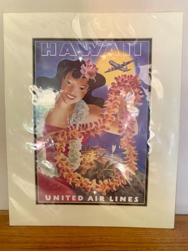 Reproduction fo 1953 United Airlines Hawaiian Travel Poster, never removed from plastic sleeve.