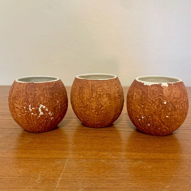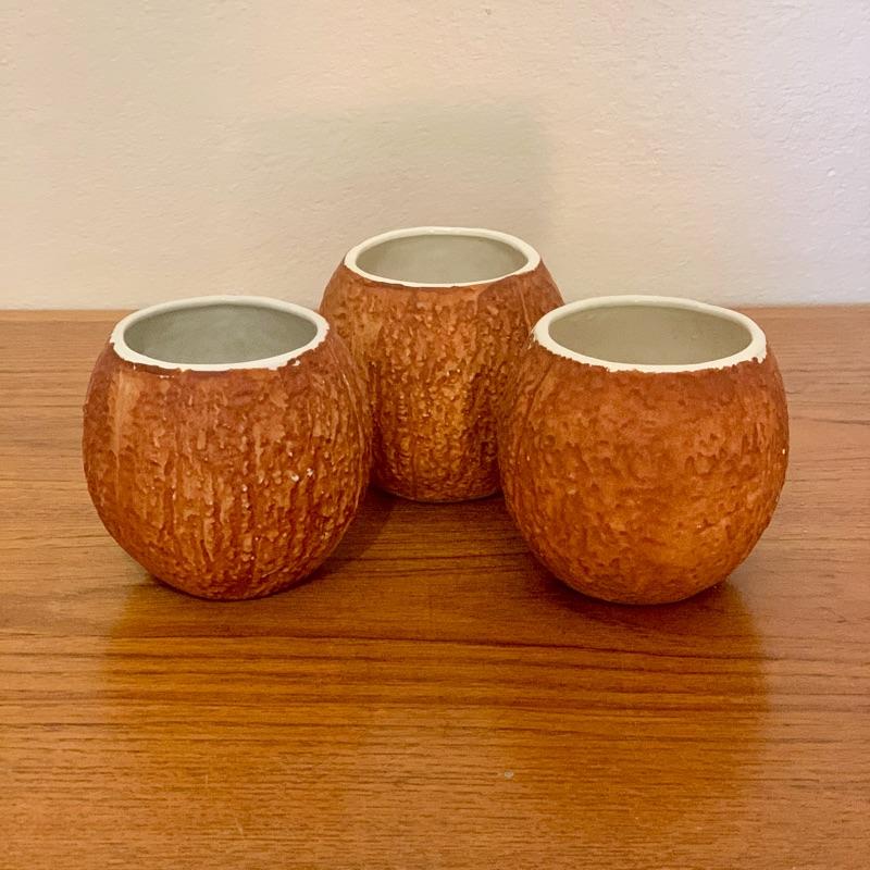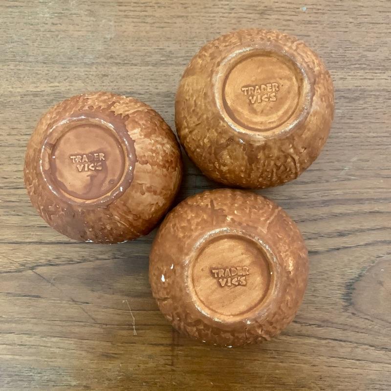 Set of 3 Trader Vic's Coconut shaped ceramic glasses.