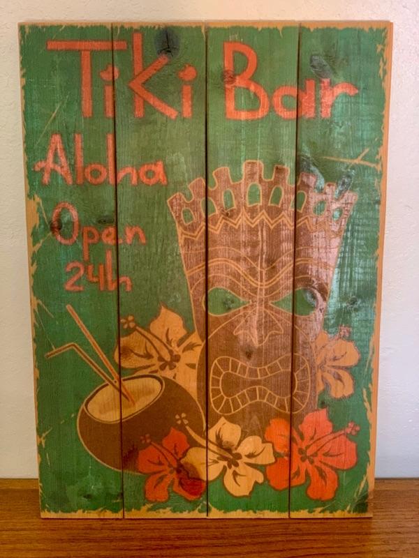 One solid wood Tiki Bar wall hanging. Excellent condition.