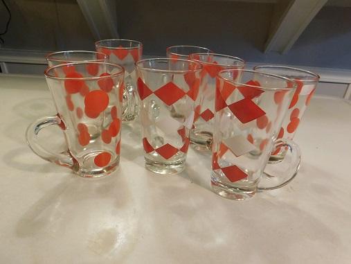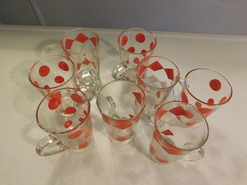 Vintage Hazel Atlas 8 pc Red-White Diamond and Dots Lemonade Glasses