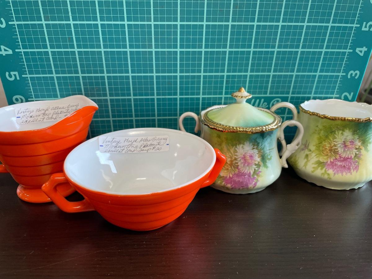 Vintage Hazel Atlas cream, sugar, Federal set & bone China