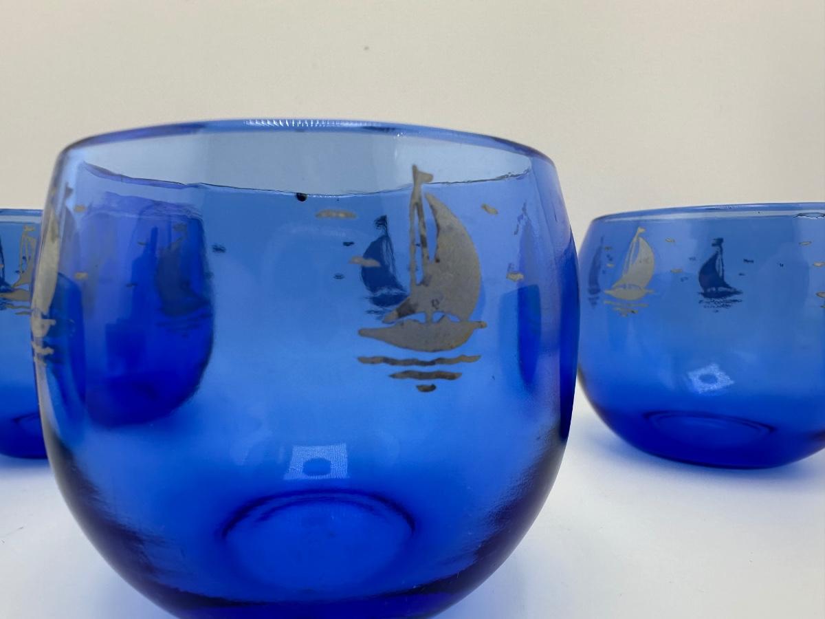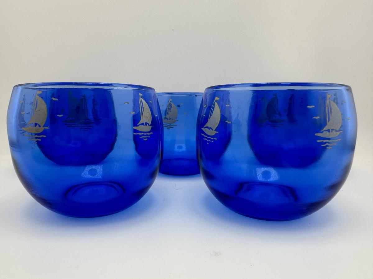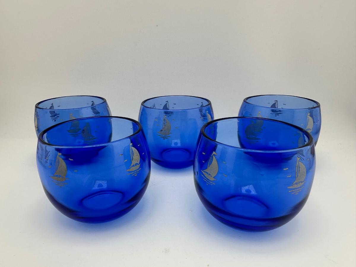 Vintage Hazel Atlas Sailboat Roly Poly Glasses - Set of (5)