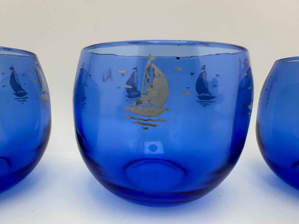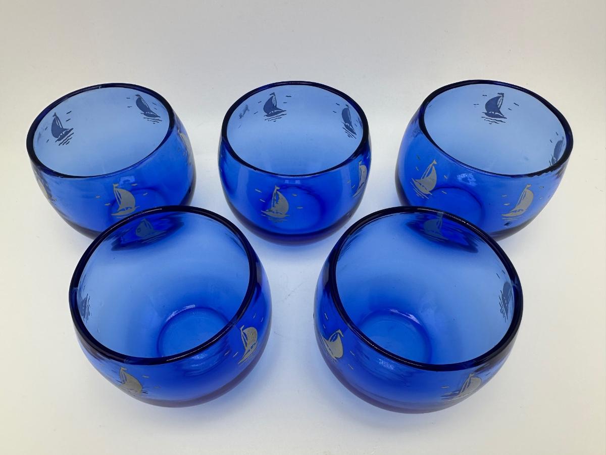 Set of five Hazel Atlas sailboat roly poly glasses.