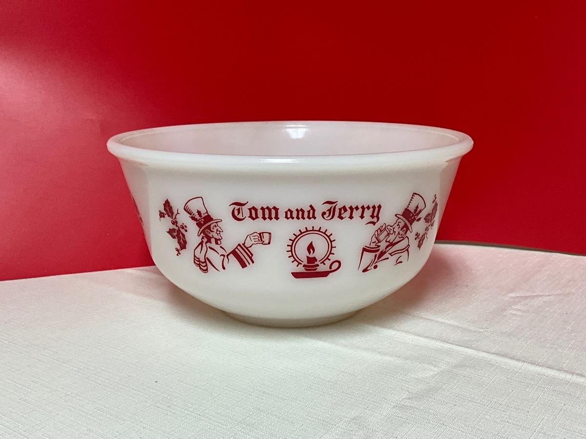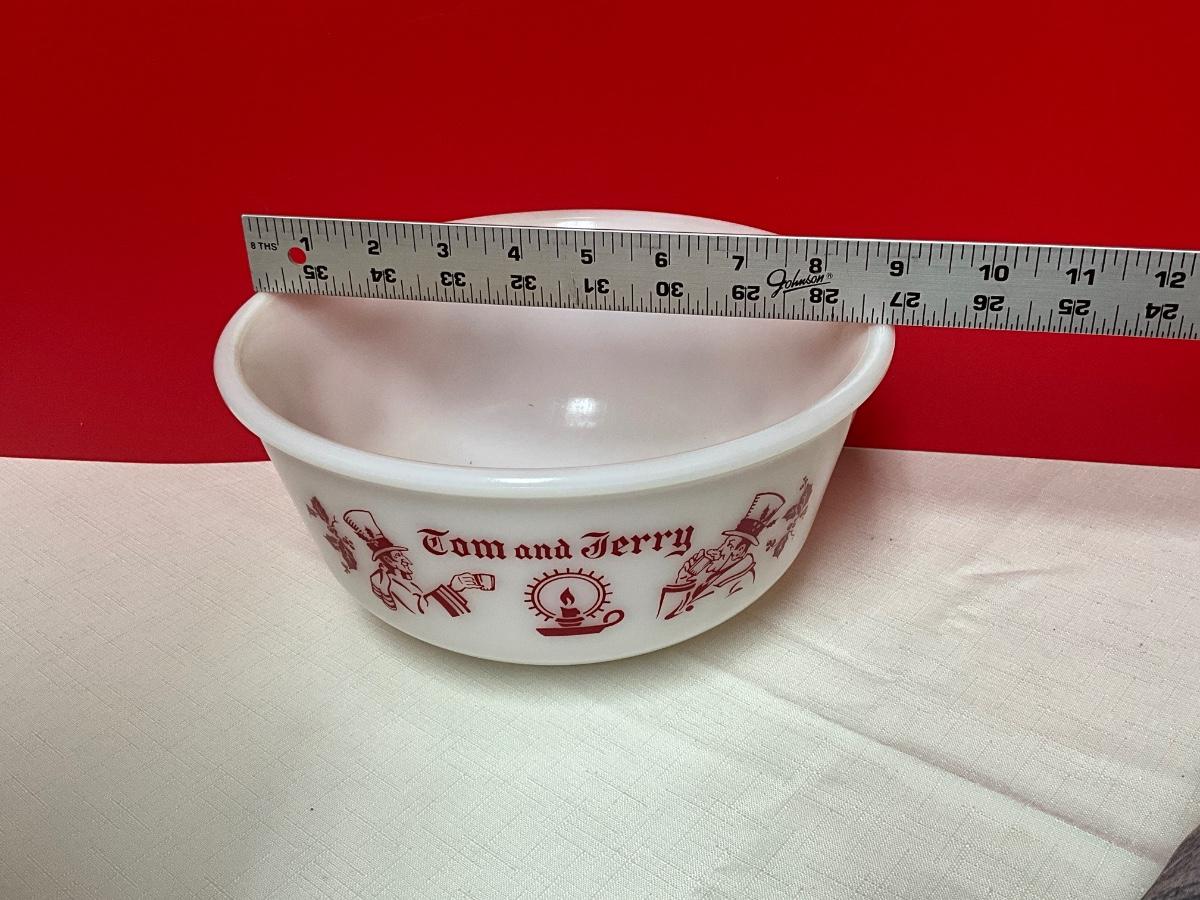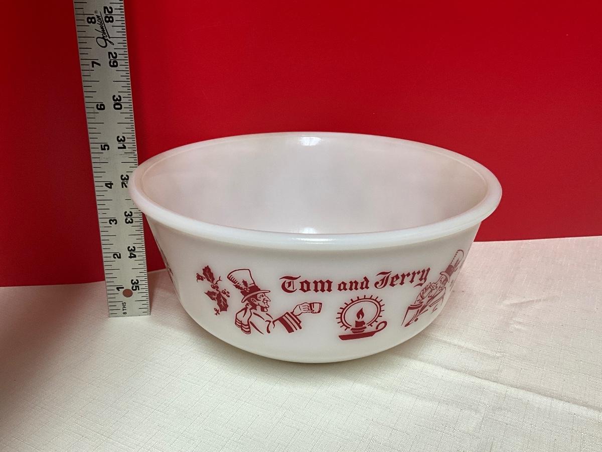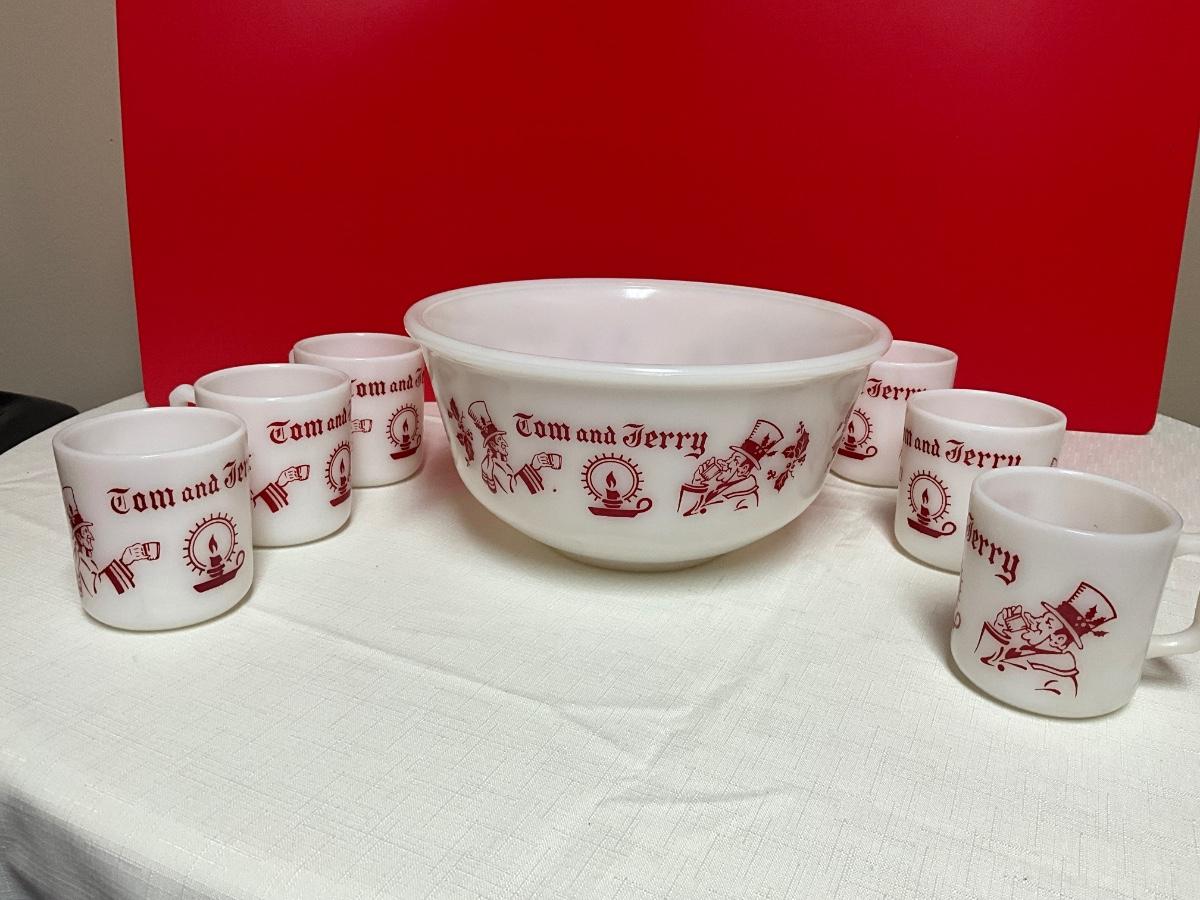 Vintage Hazel Atlas Tom and Jerry Bowl and 6 Glasses