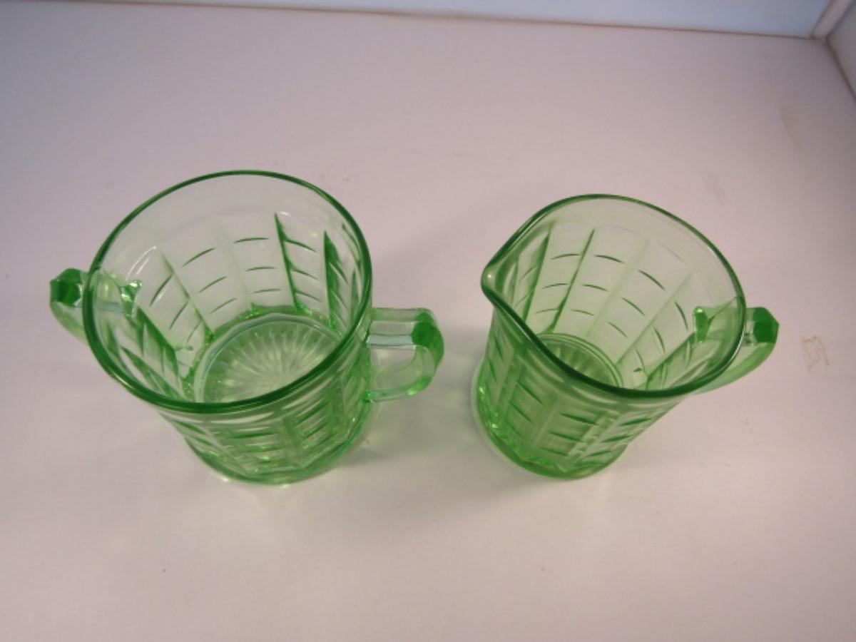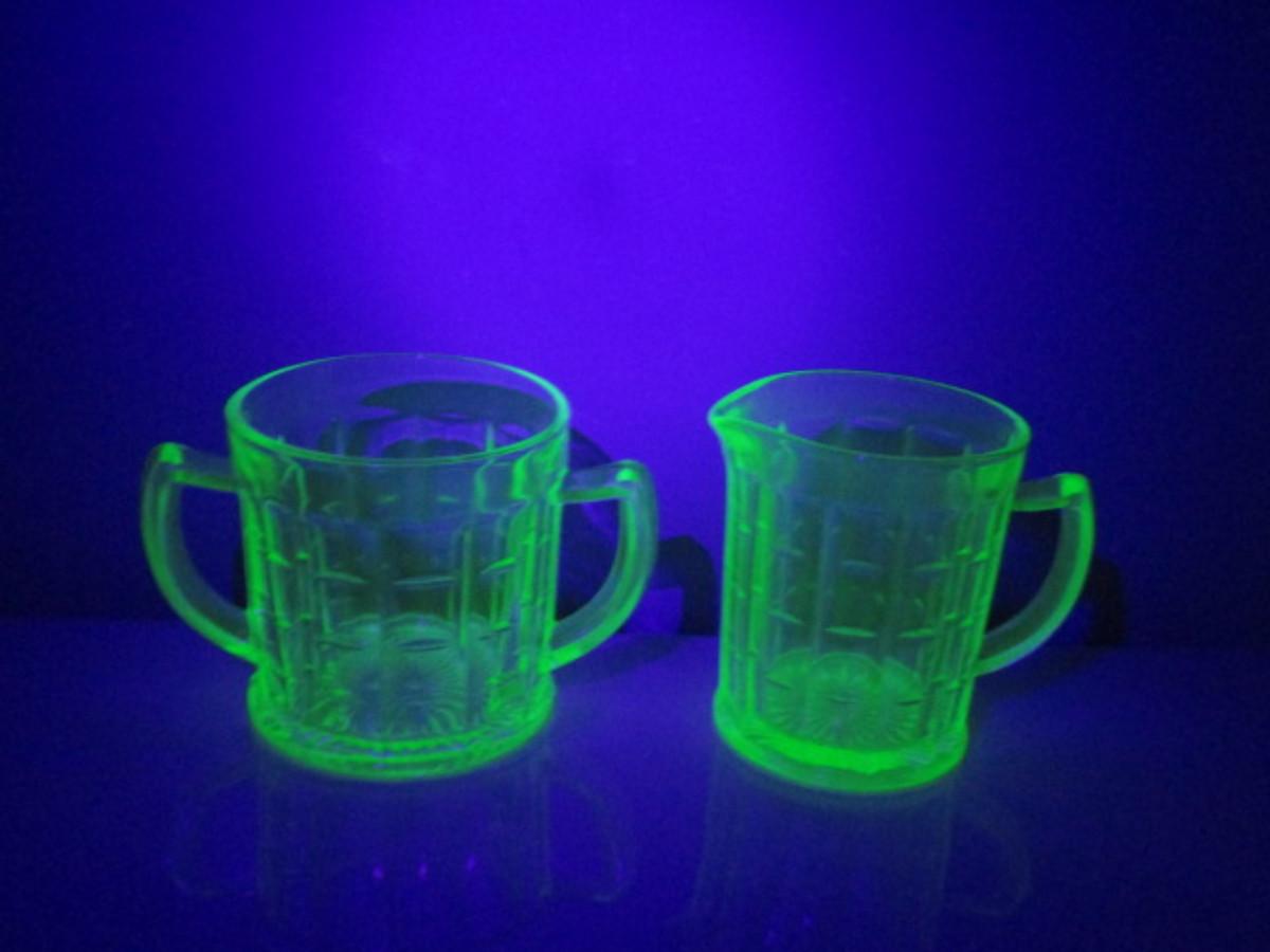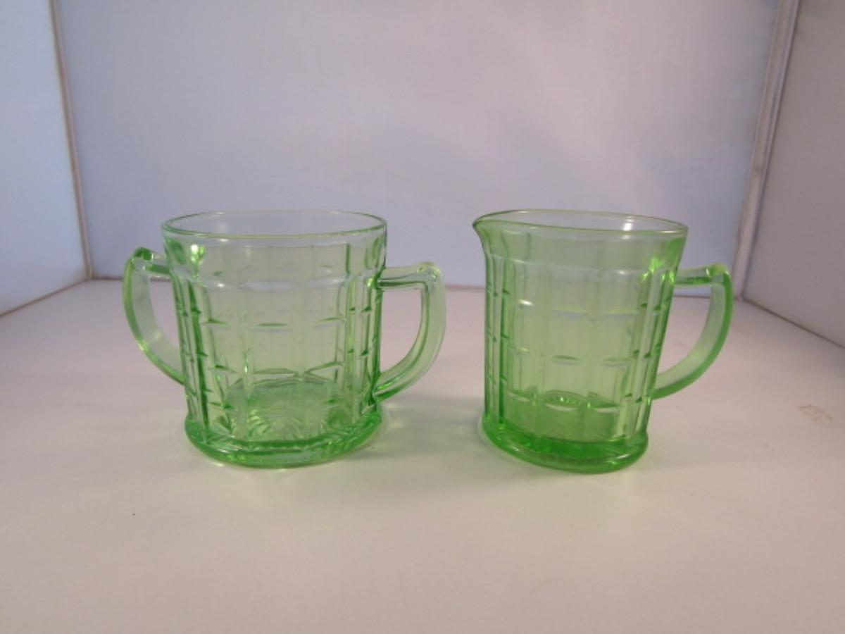 Vintage Hazel Atlas Uranium Glass Creamer and Sugar Bowl
