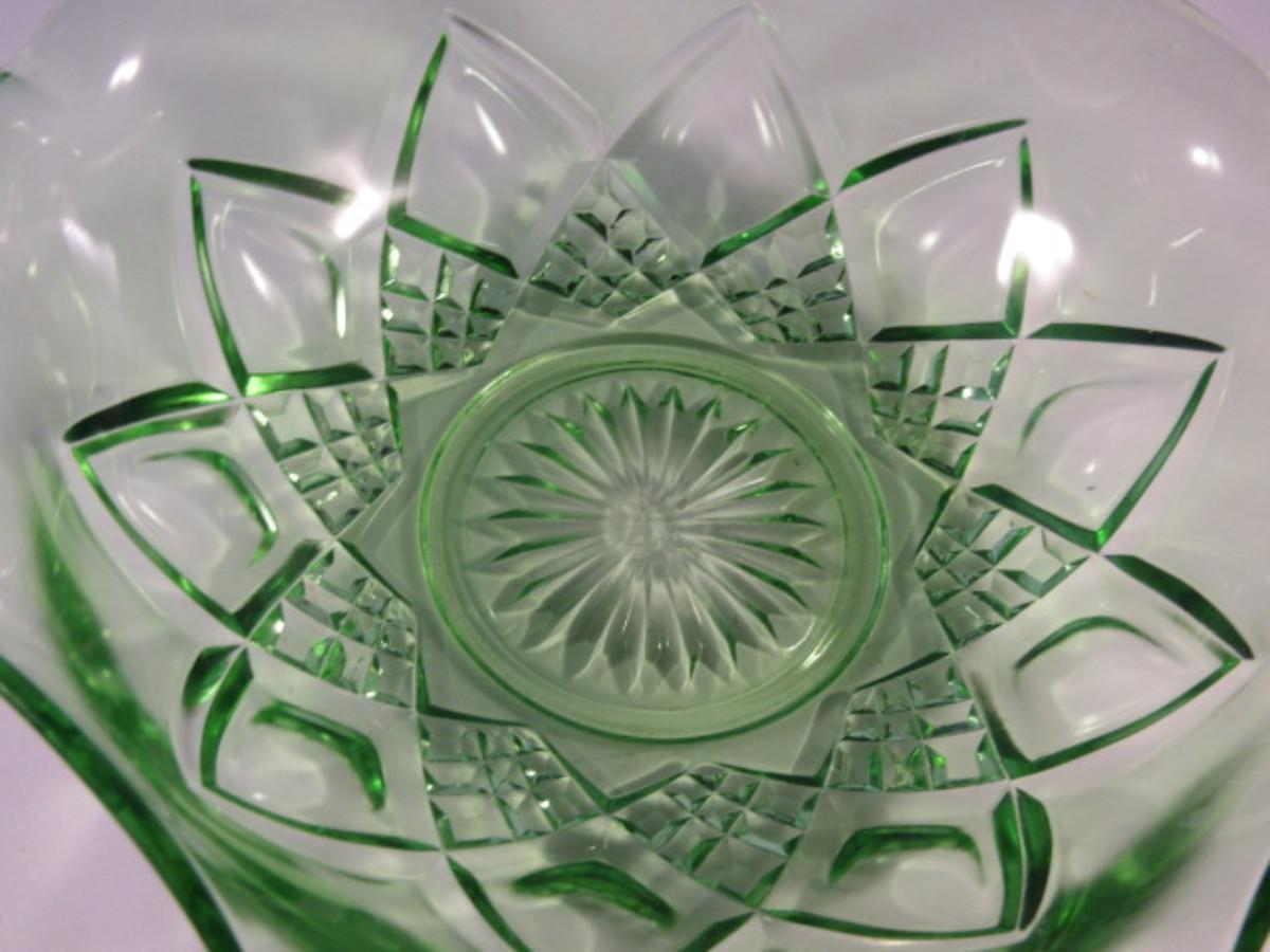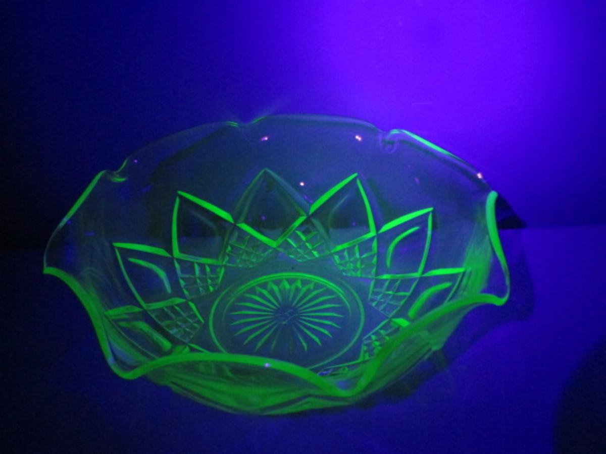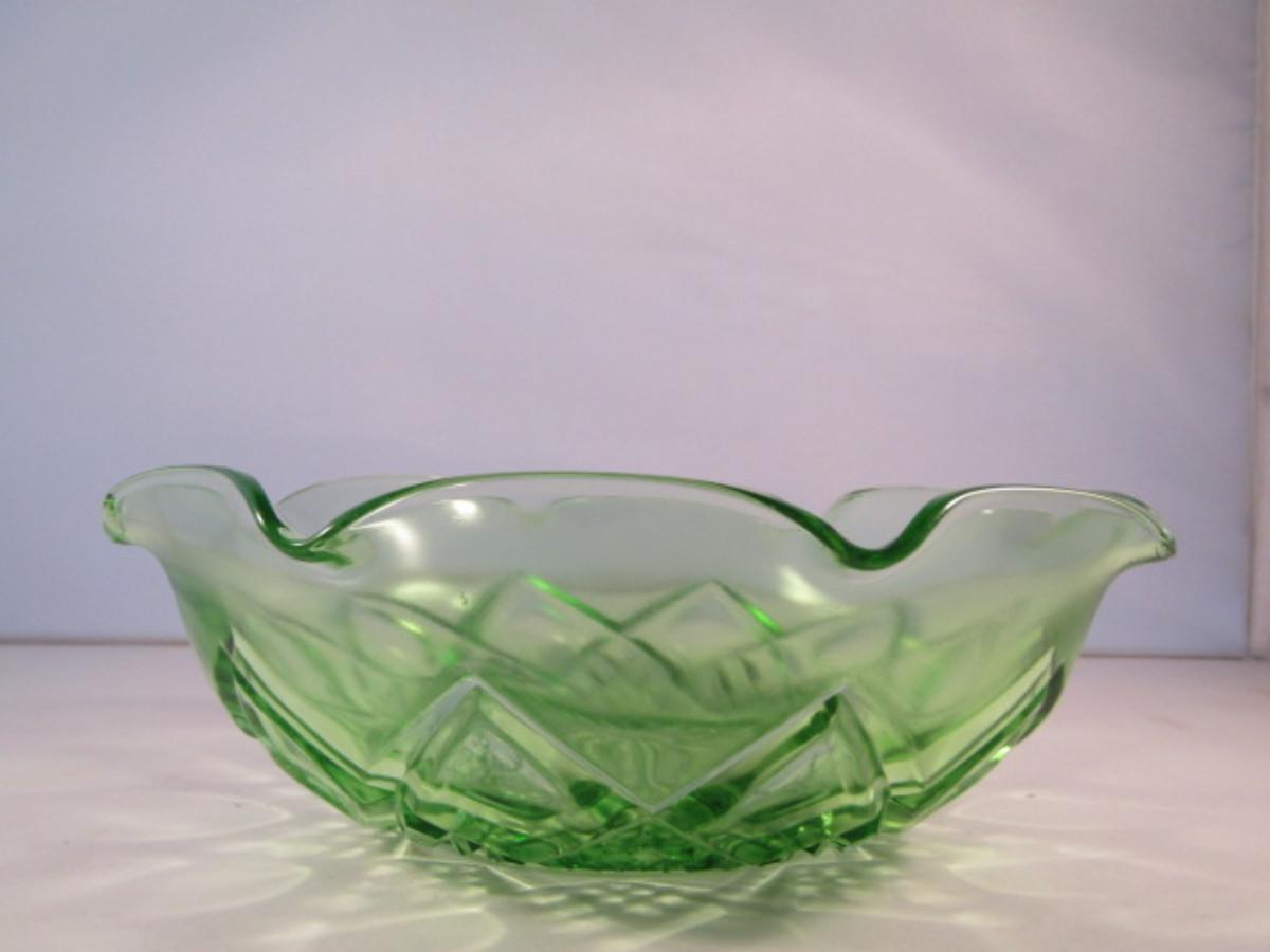 Vintage Hazel Atlas Uranium Glass Bowl with Ruffled Edge- Approx 8 3/4" in Diameter