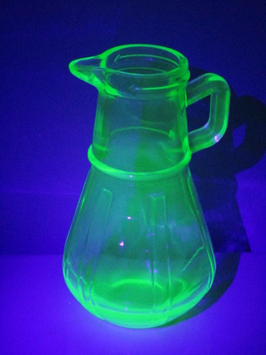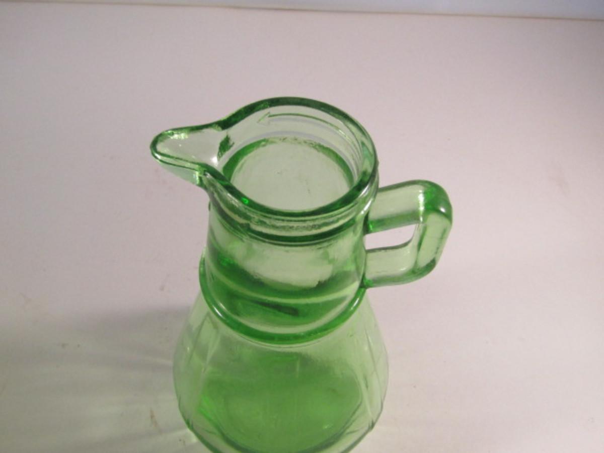 Vintage Hazel Atlas Uranium Glass Syrup Pitcher- Approx 6" Tall