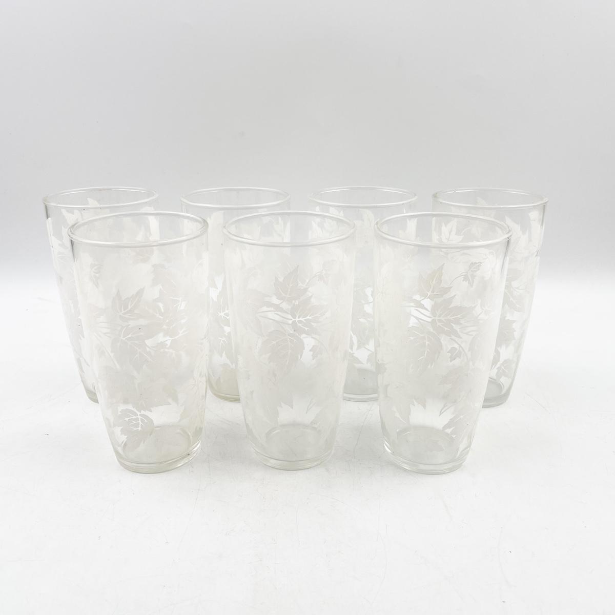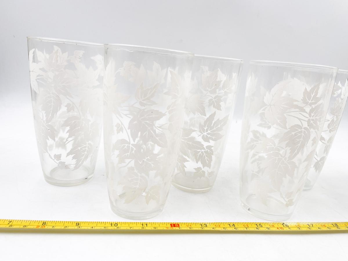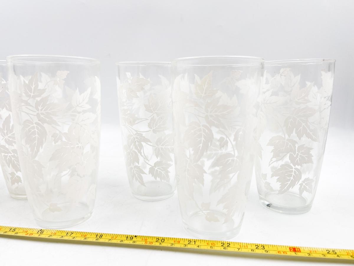 VINTAGE HAZEL-ATLAS ETCHED MAPLE LEAF 6” GLASSES (7)