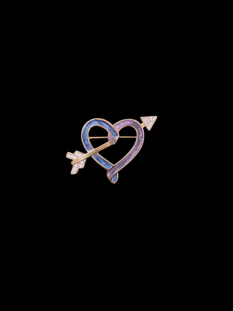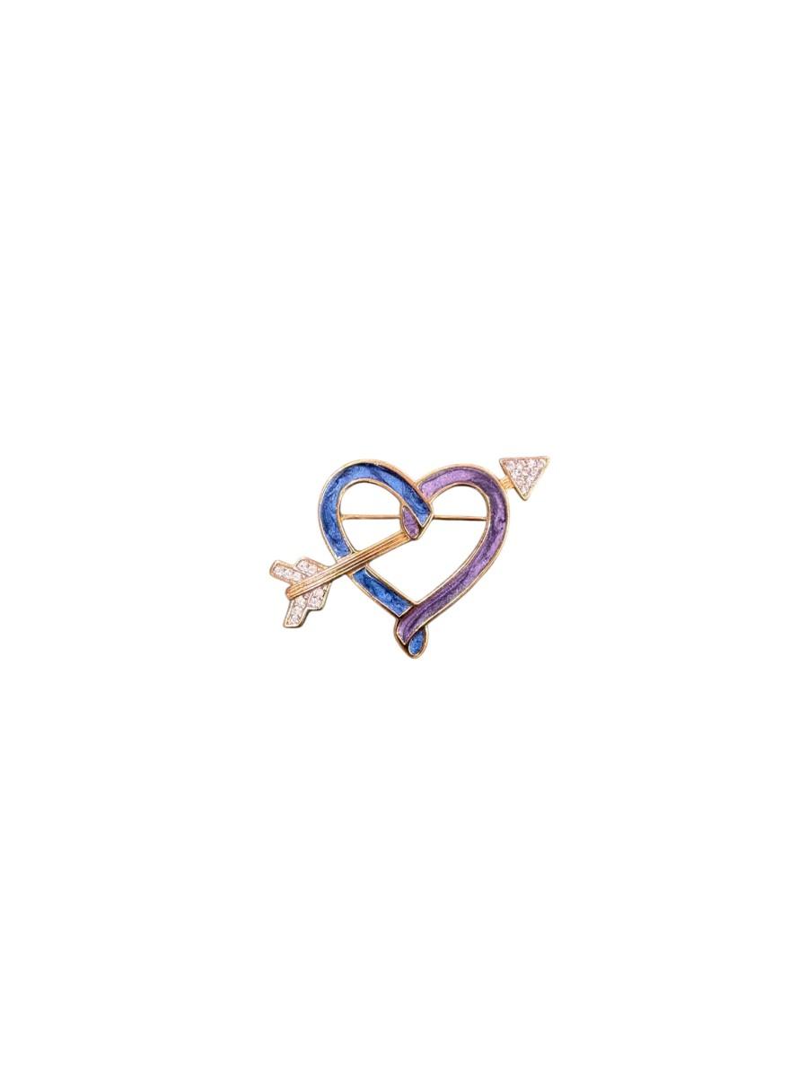 Vintage Heart and Arrow Blue and Purple Enamel Brooch By Trifari