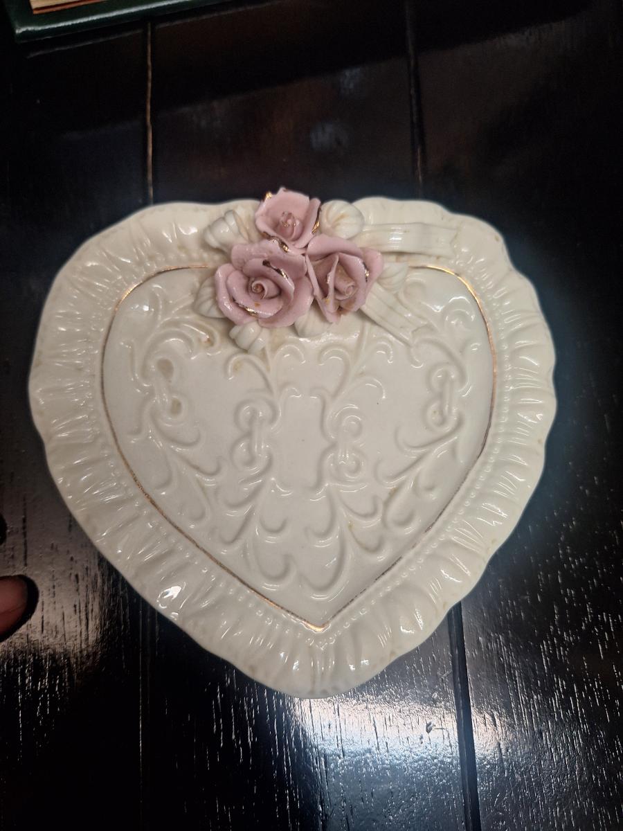 vintage heart shaped porcelain trinket dish