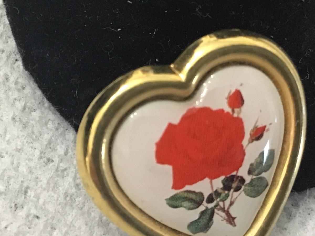 Vintage Heart Shaped Rose Center Brooch, Floral Lapel Pin, Cute Little Guy