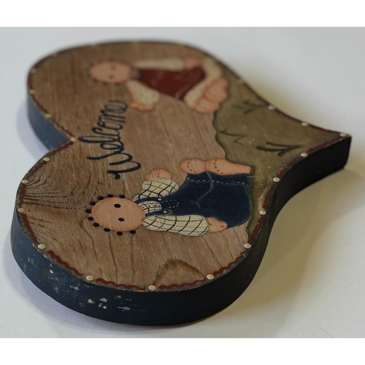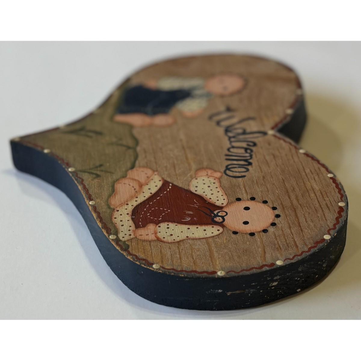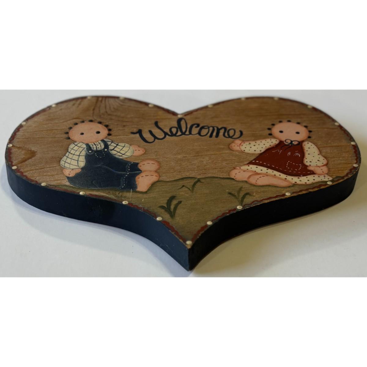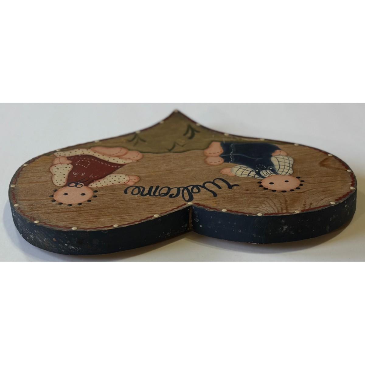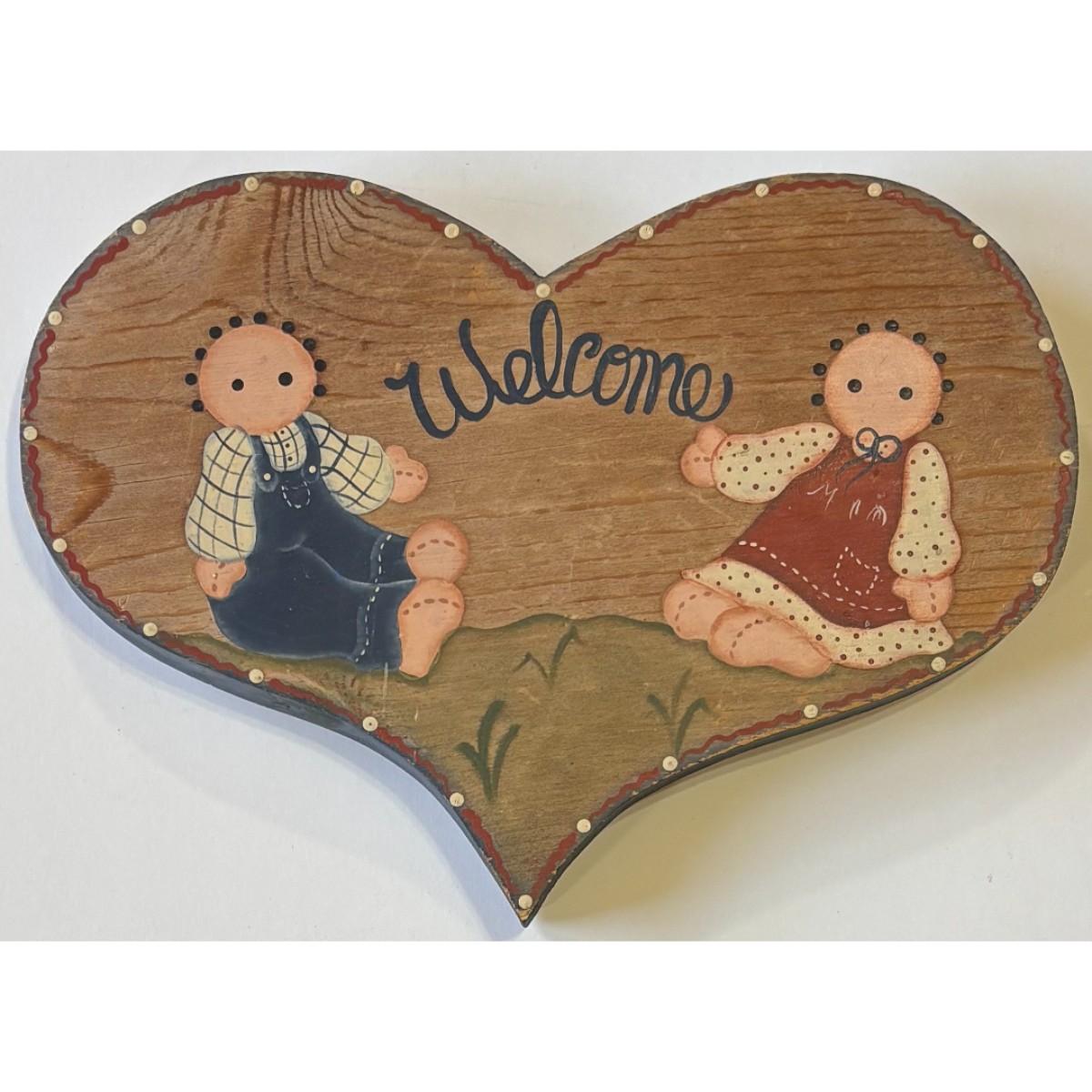 Vintage Heart Shaped Wood Welcome Sign Children Wooden Americana Dolls