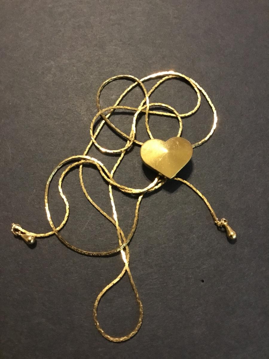 Vintage, heart slider, necklace, gold toned