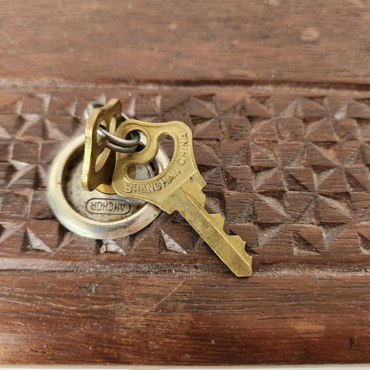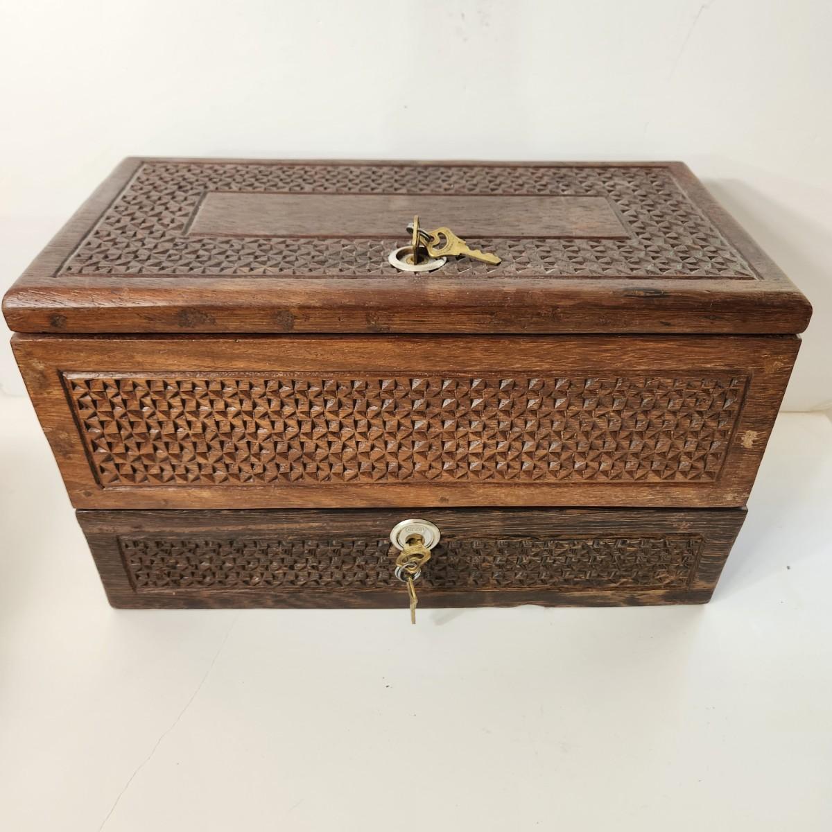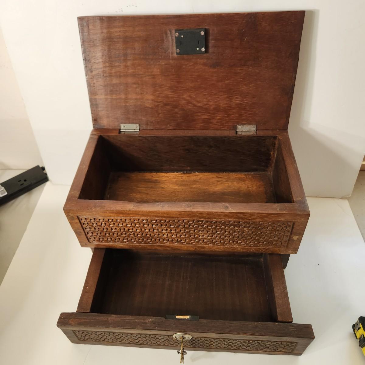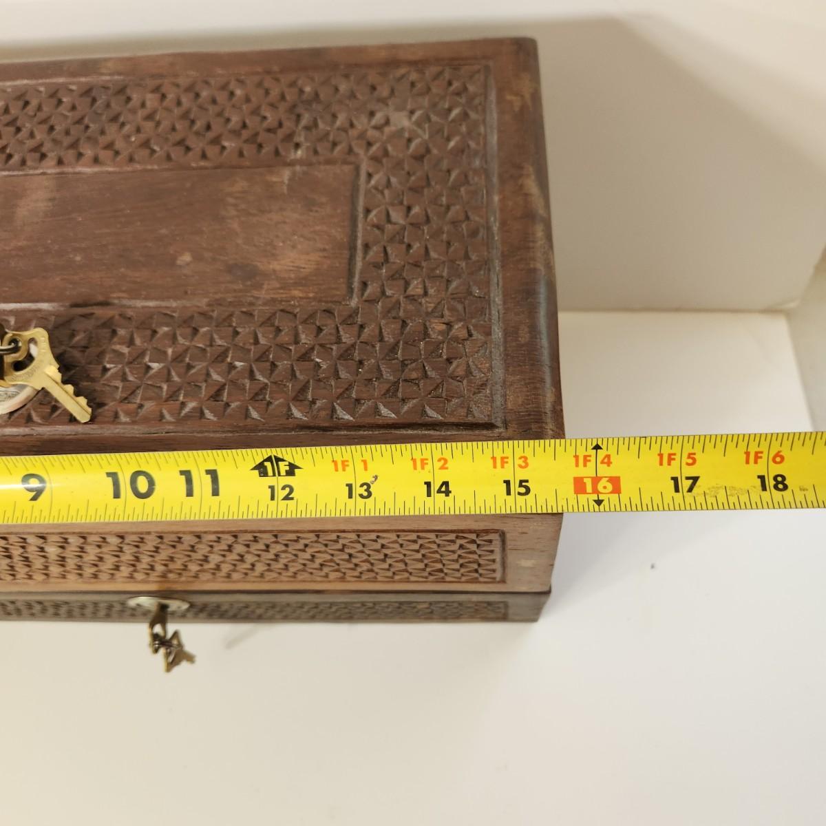 Vintage Heavy Asian Wooden Jewelry Box with Locks & Keys Shanghai China