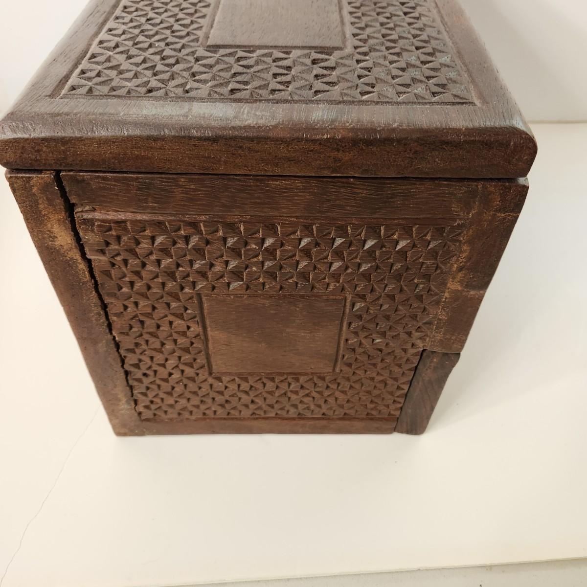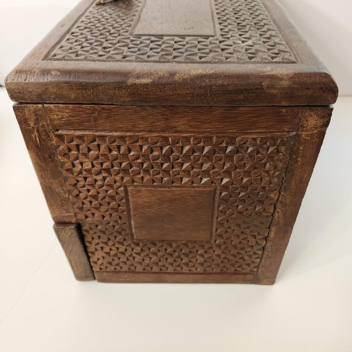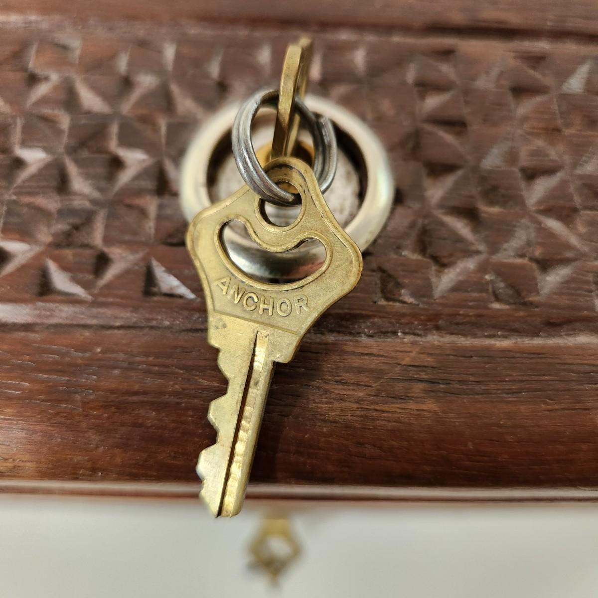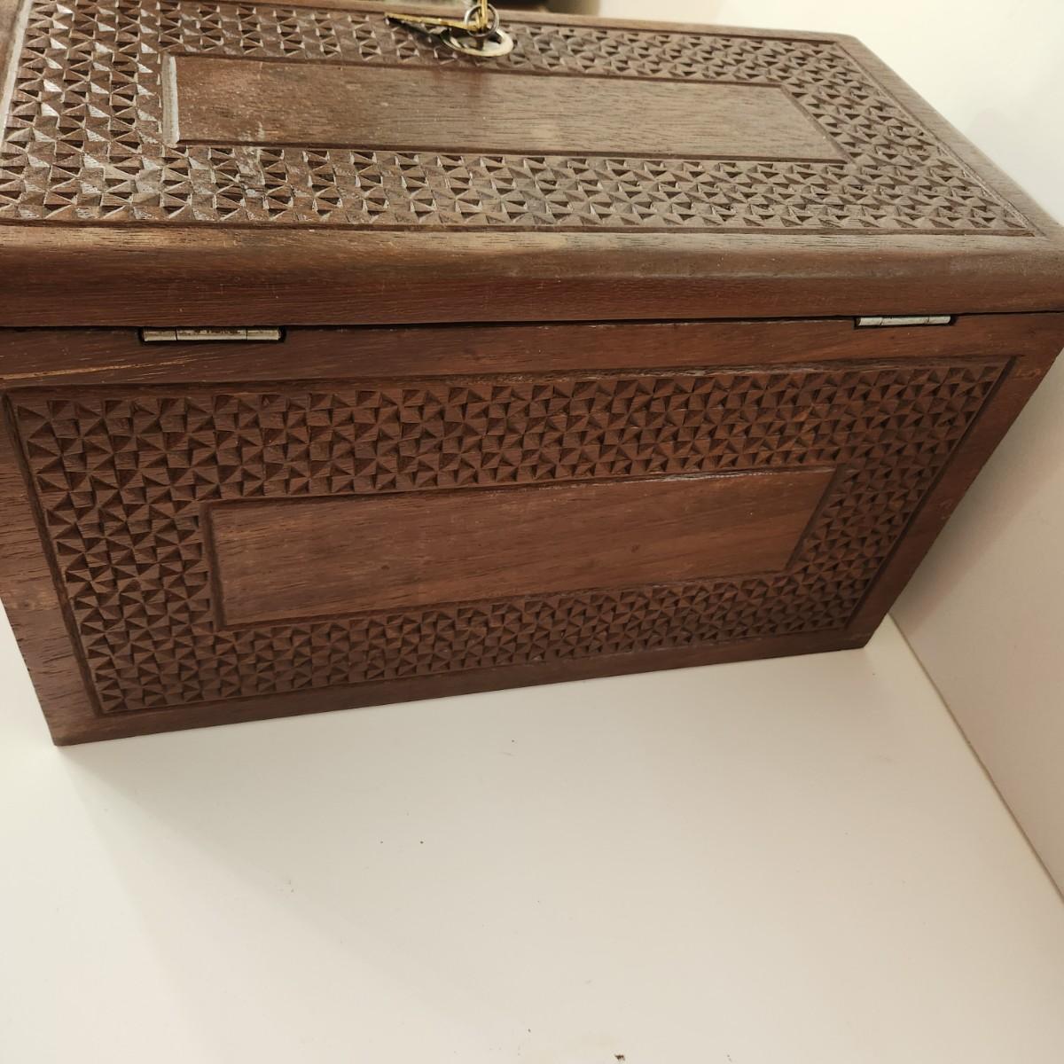Vintage Heavy Asian Wooden Jewelry Box with Locks & Keys Shanghai China