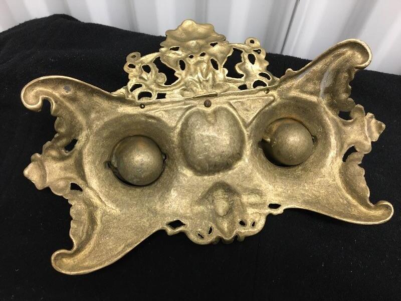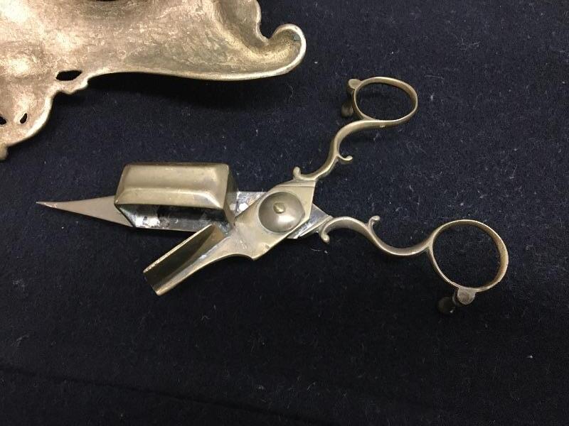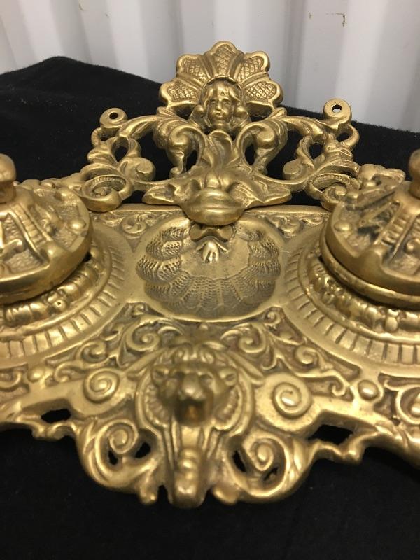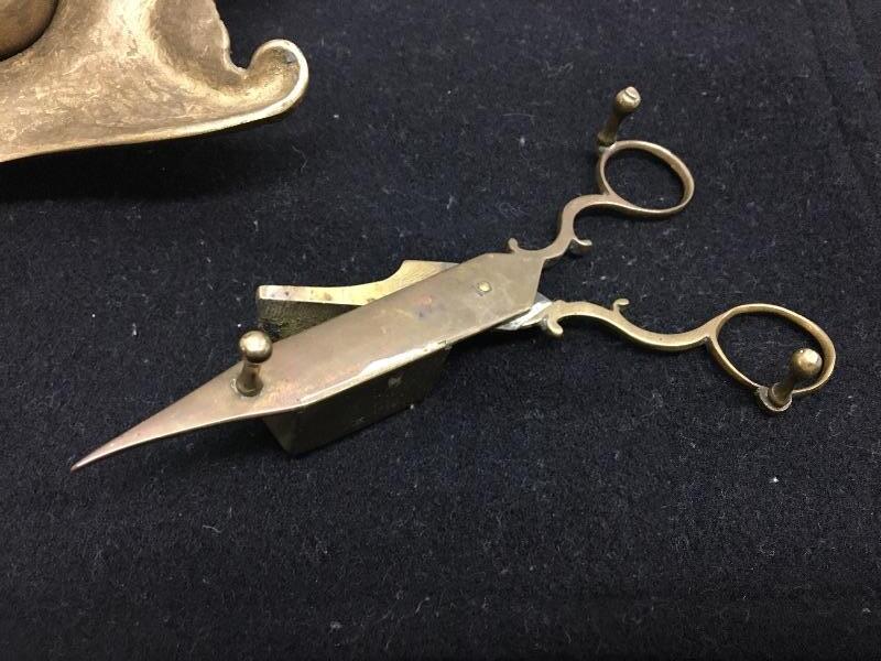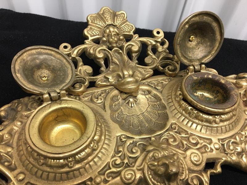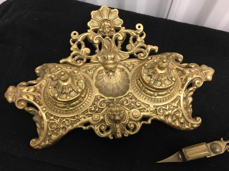 Vintage Heavy Brass Inkwell Set with Candle Scissors