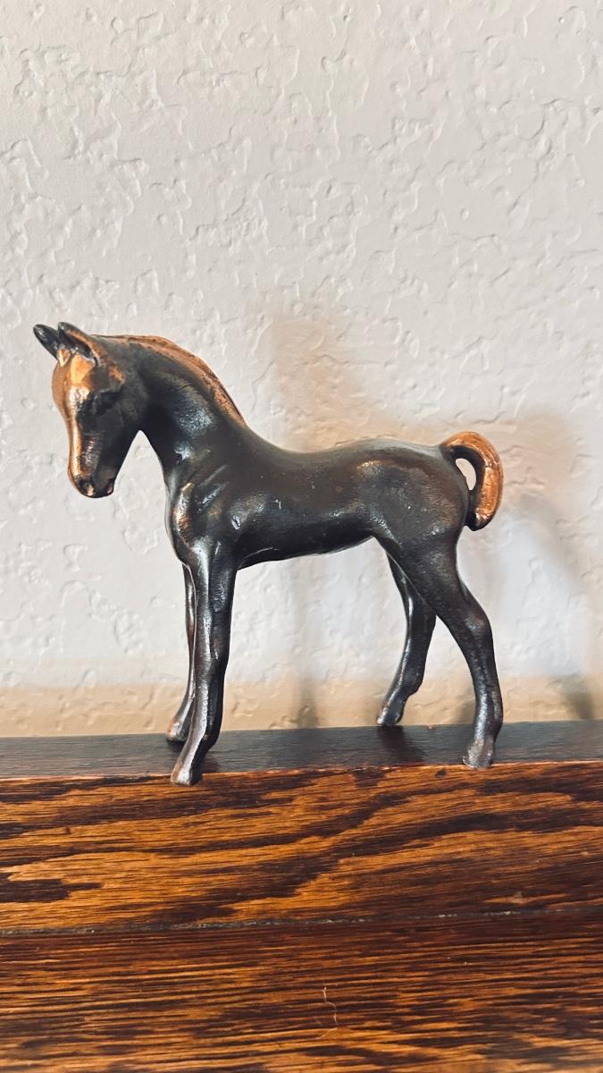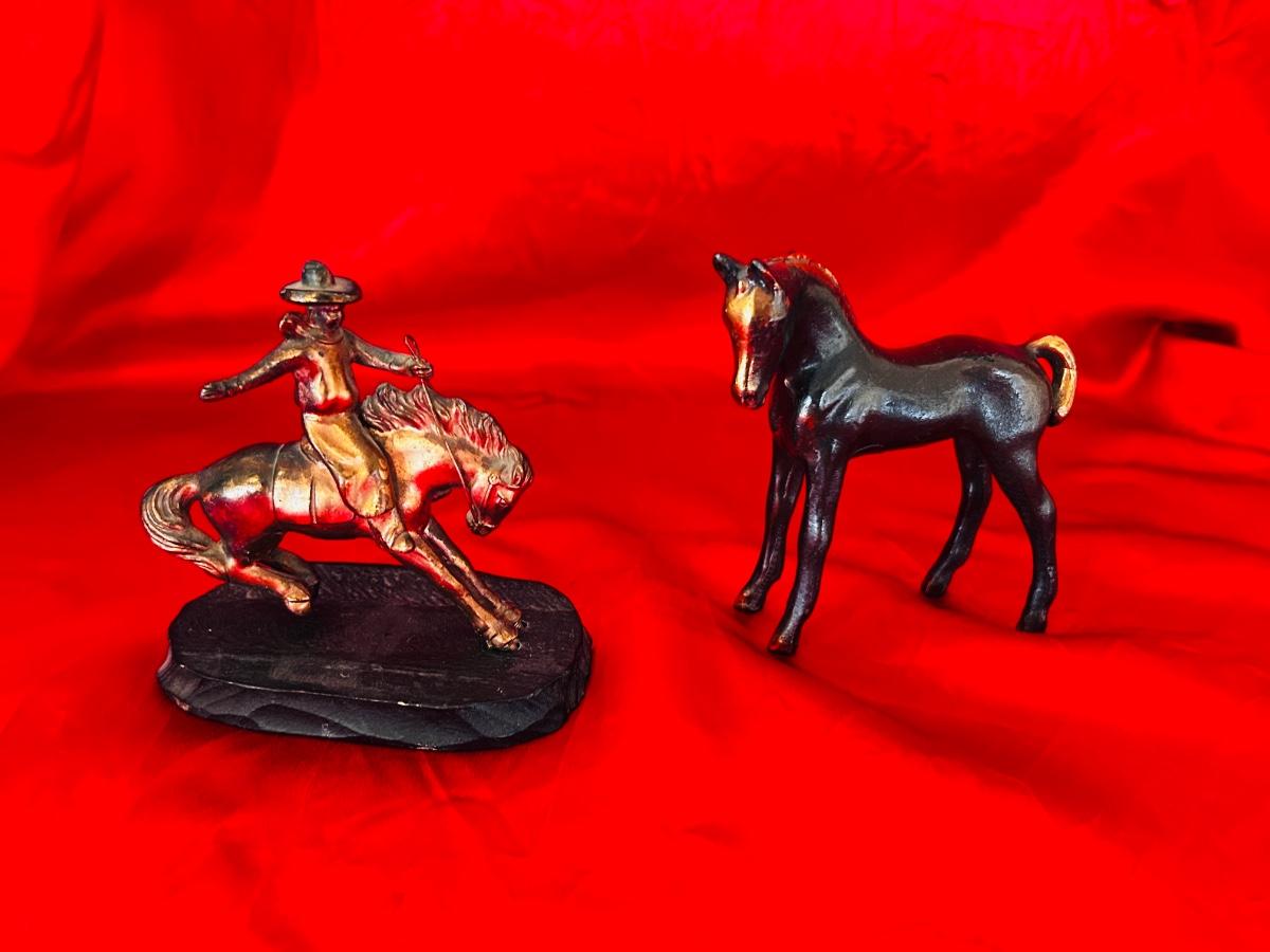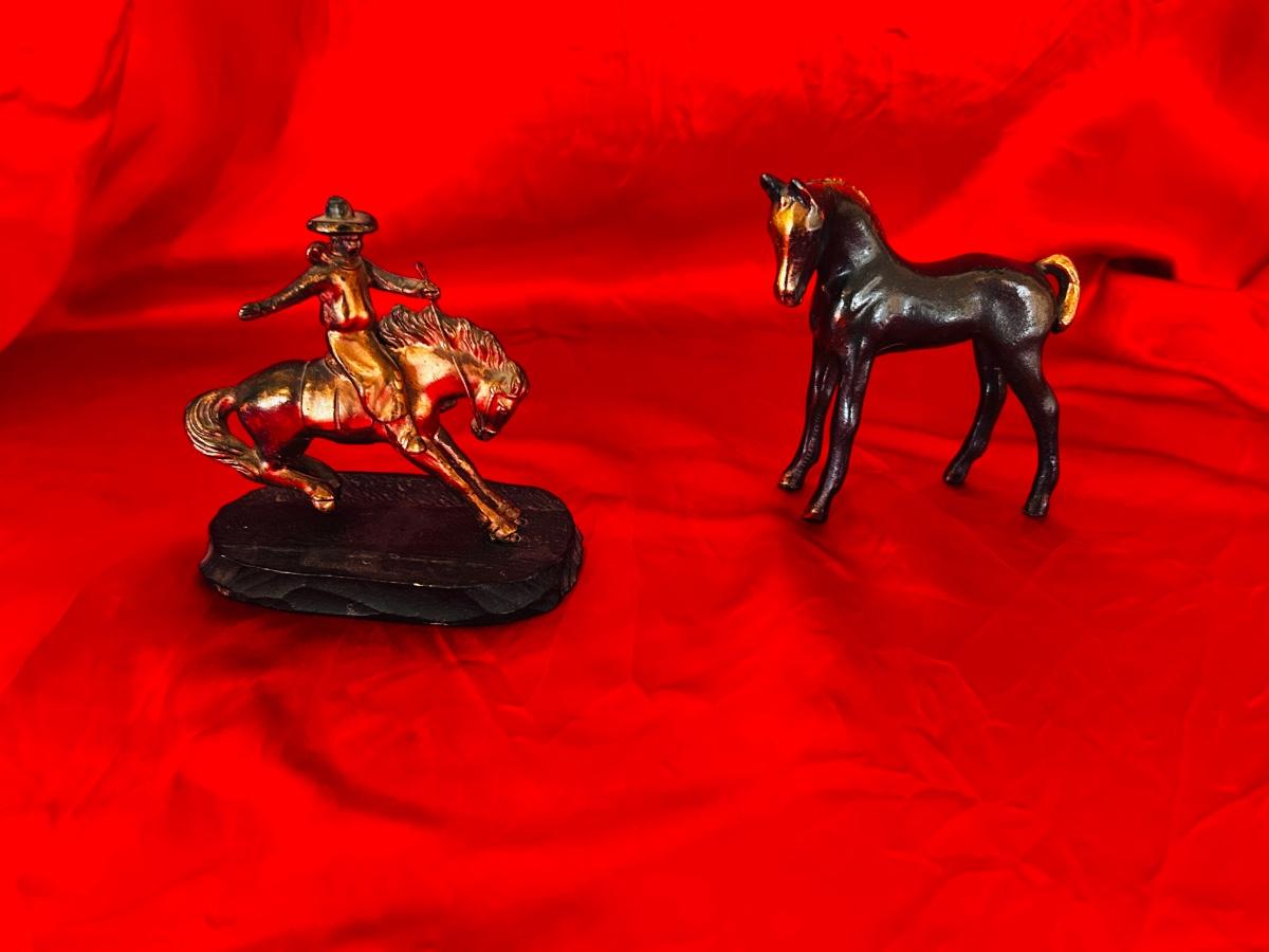 VINTAGE HEAVY BRONZE COLT AND BUCKING BRONCO VAQUERO COWBOY