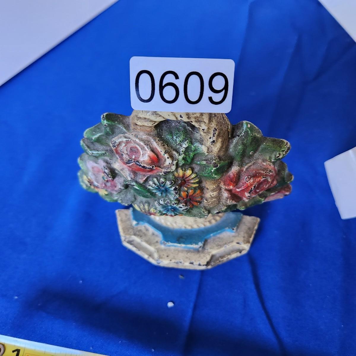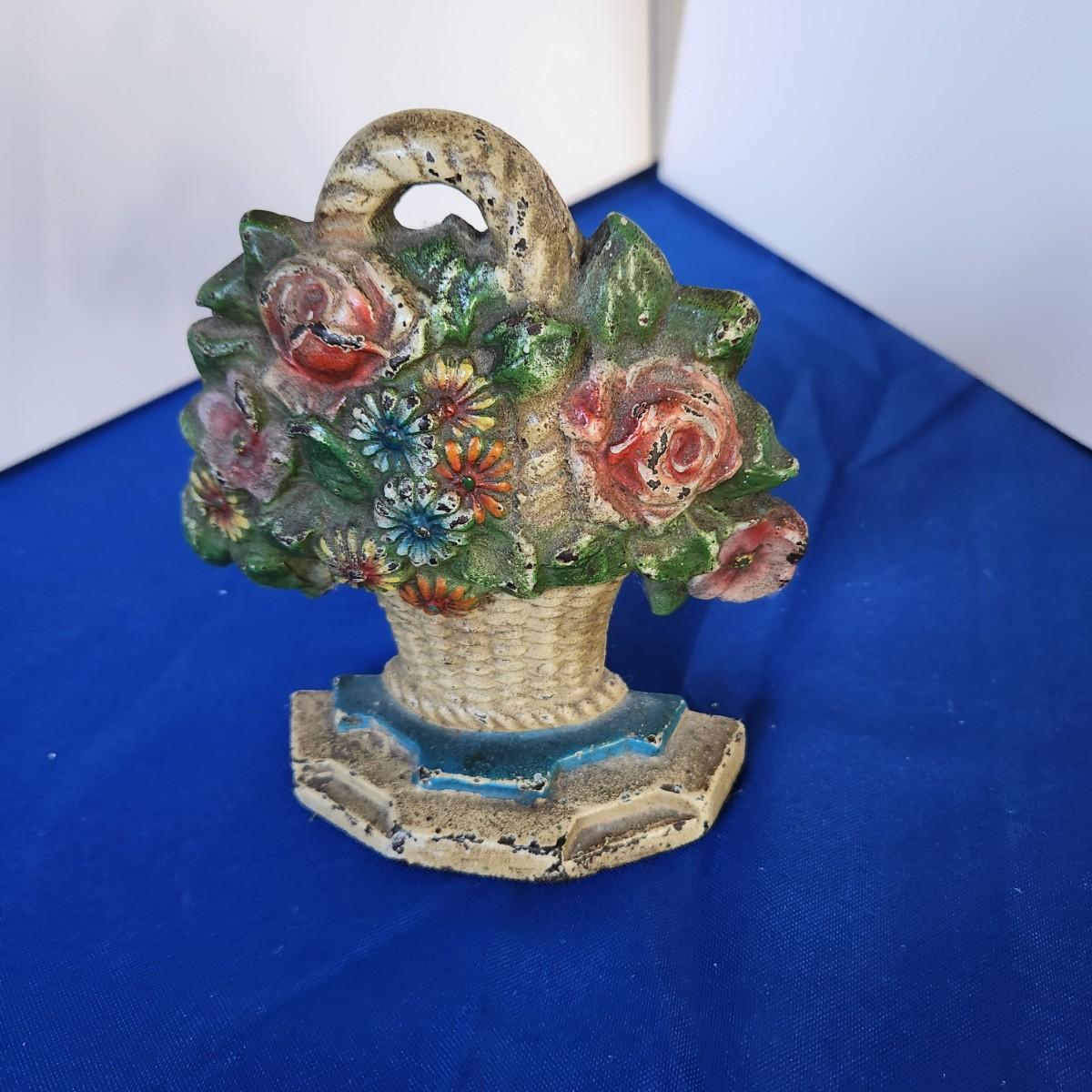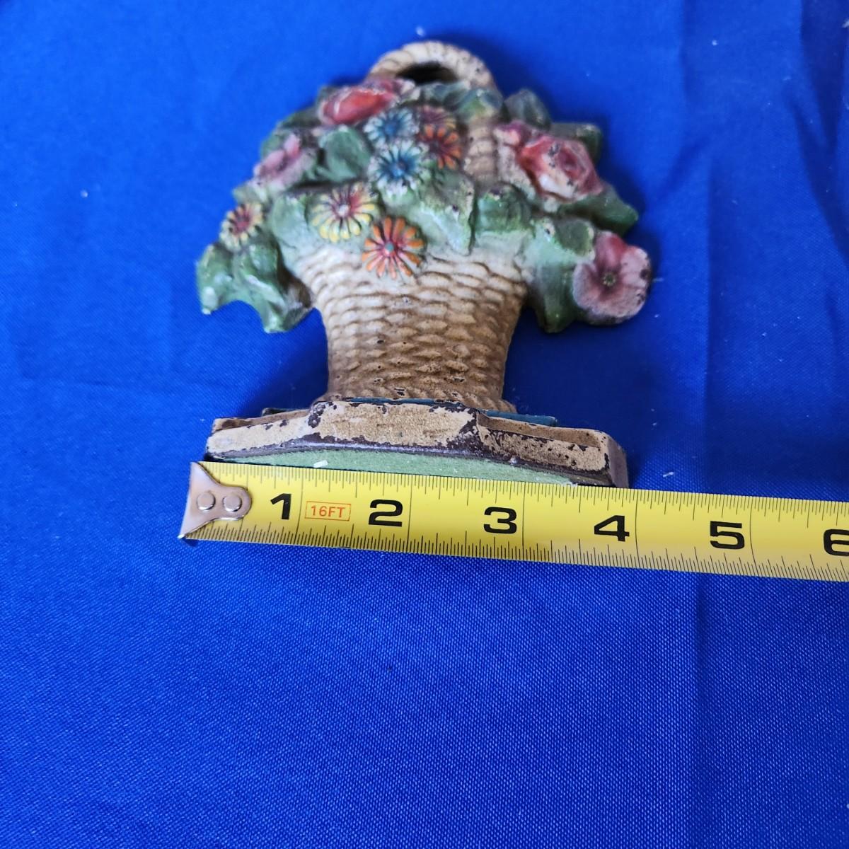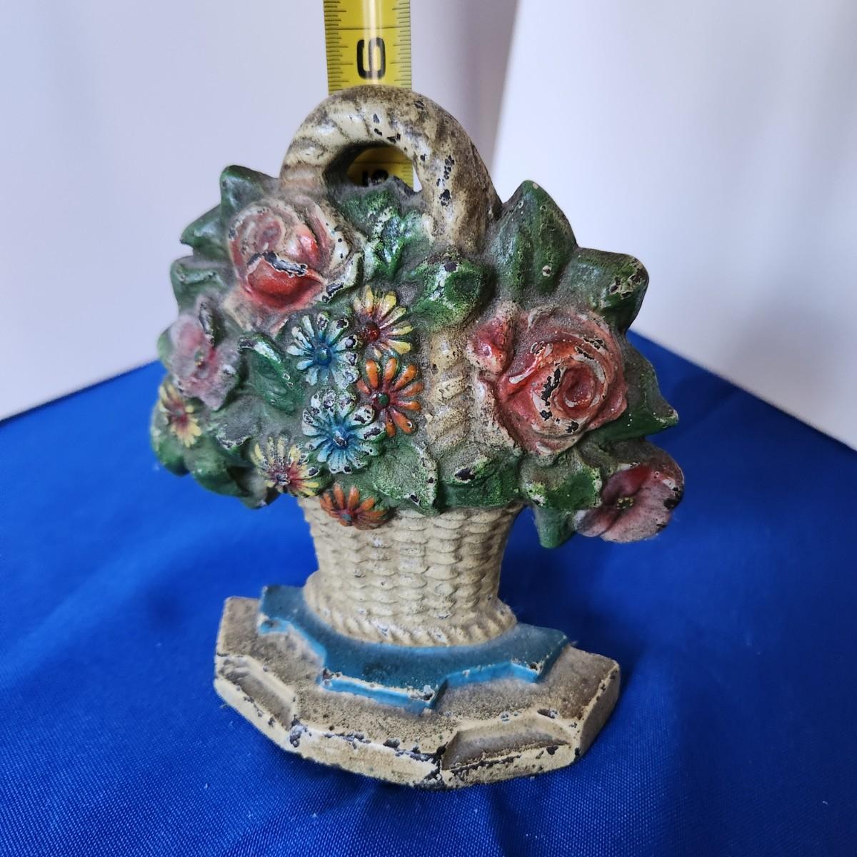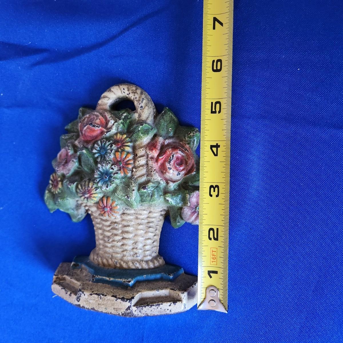 Vintage Heavy Cast Iron Flower Basket Doorstop