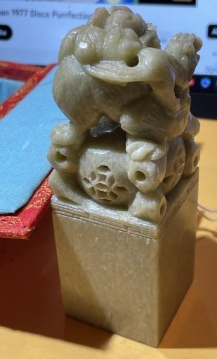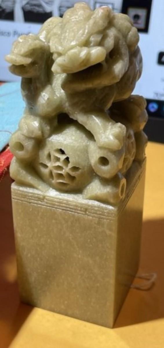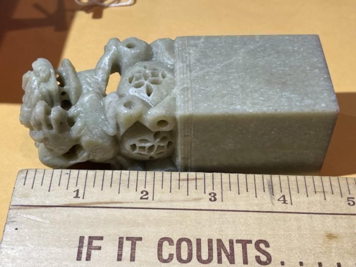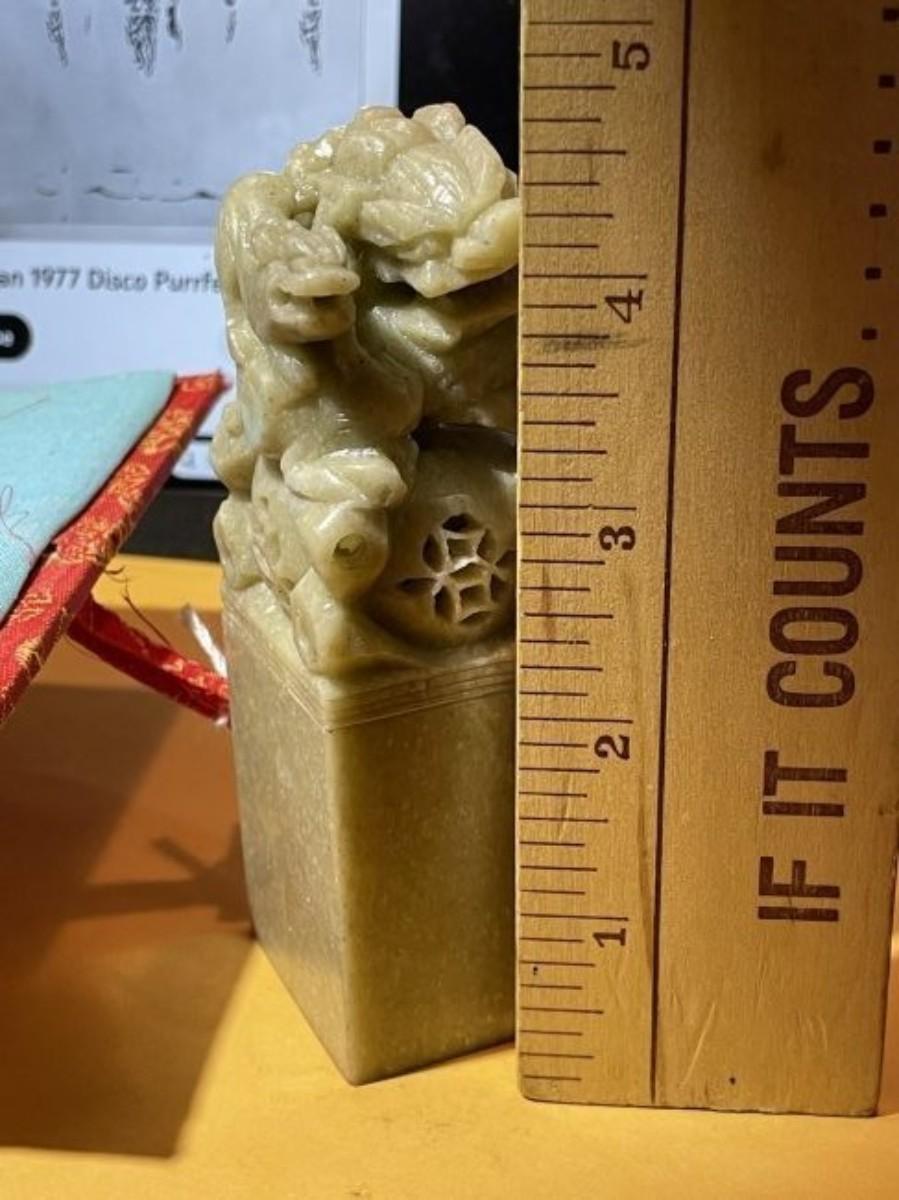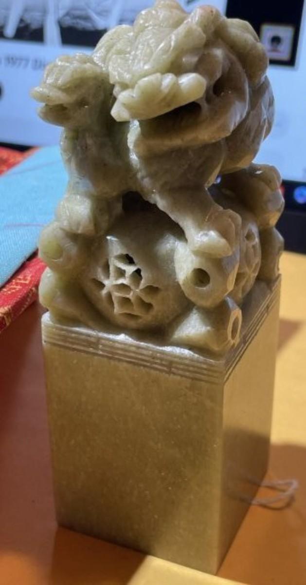 Vintage Heavy Chinese Carved Soapstone Artwork Ink Stamp Larger Size as Pictured.