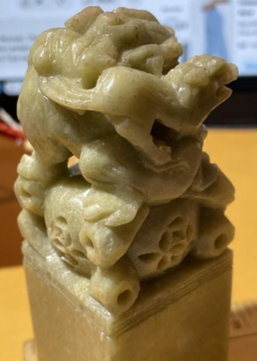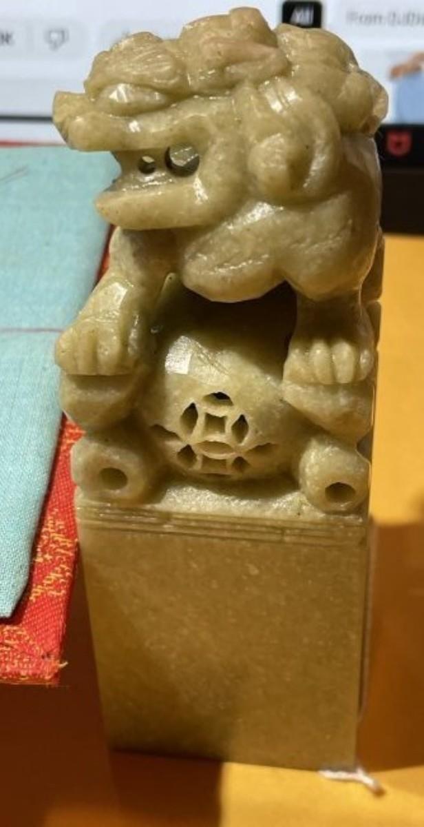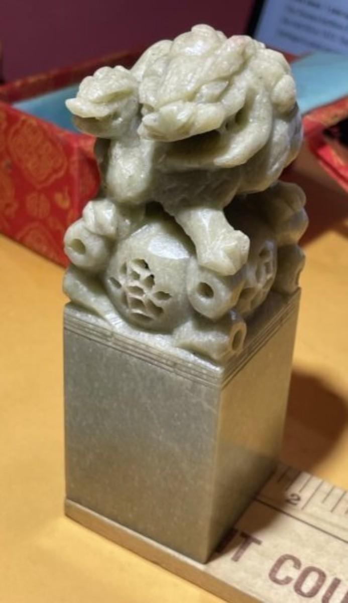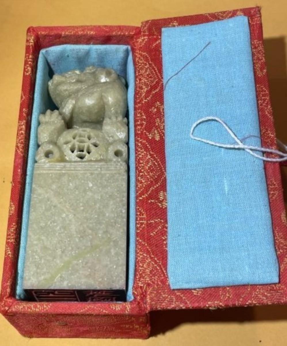 Vintage Heavy Chinese Carved Soapstone Artwork Ink Stamp Larger Size as Pictured.