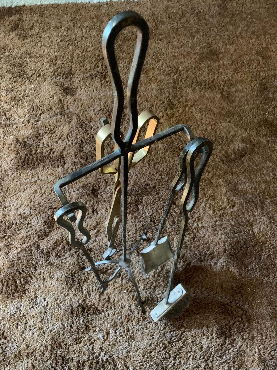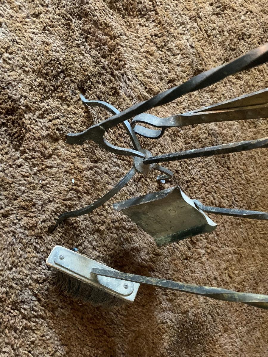 Vintage Heavy Duty Fire Place Tools and Caddy