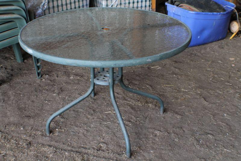 Lot #209: Vintage Heavy Glass Top Garden/Patio Table by Leisure Gardenâ„¢