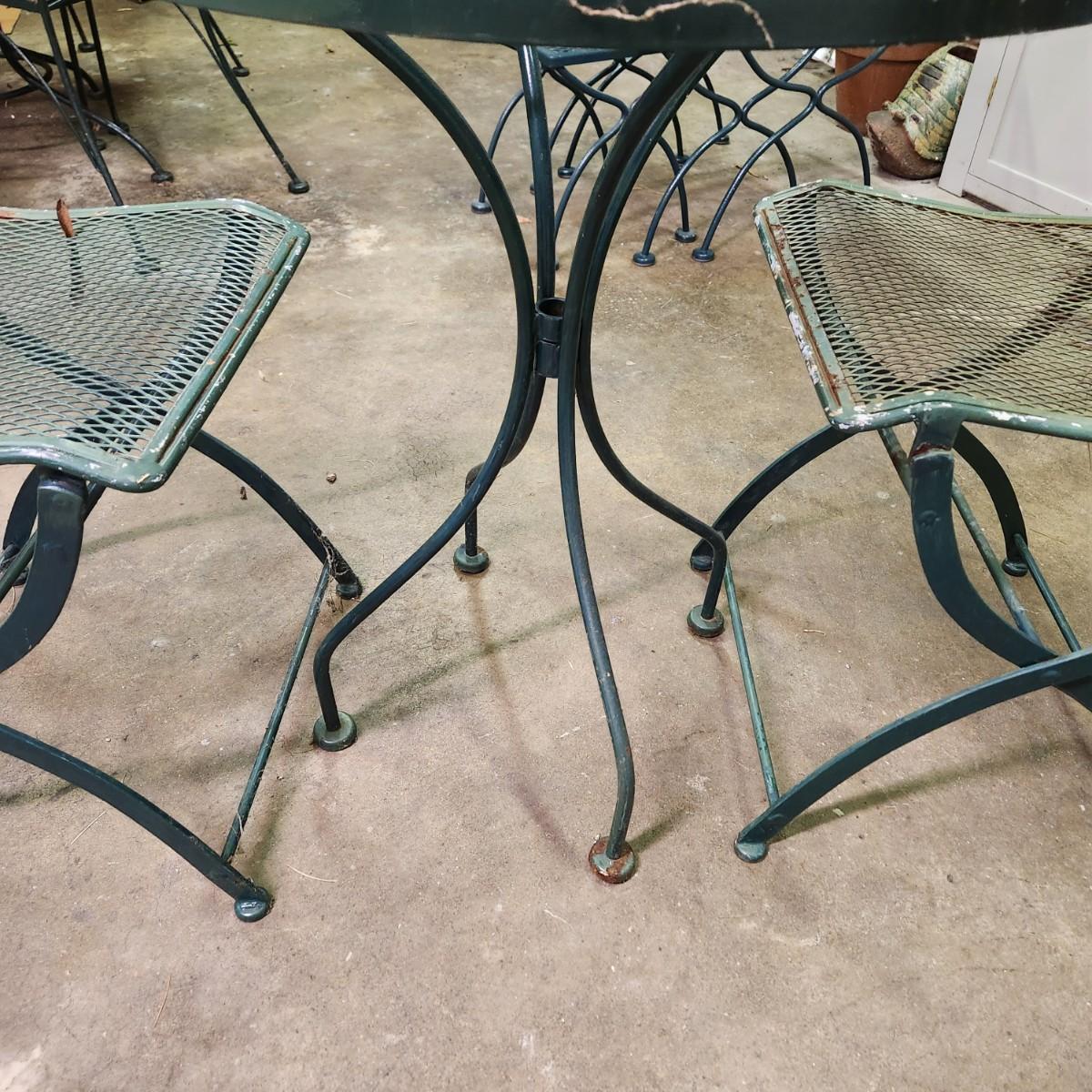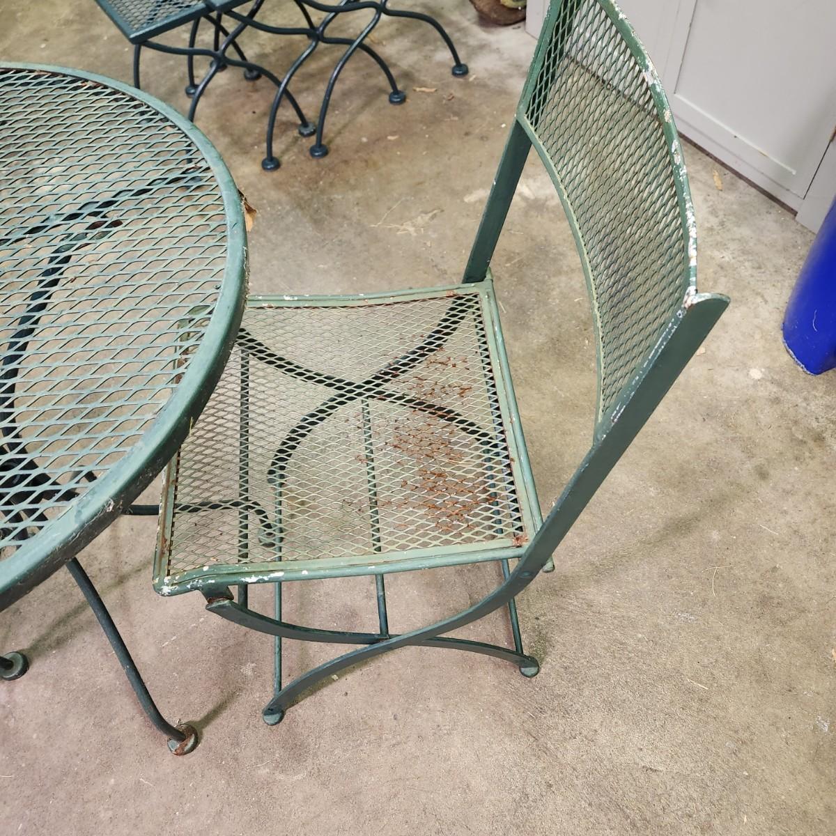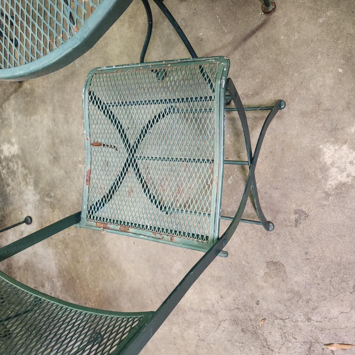 Vintage Heavy Metal Mesh Patio Set w 2 folding chairs 3 Nesting Tables