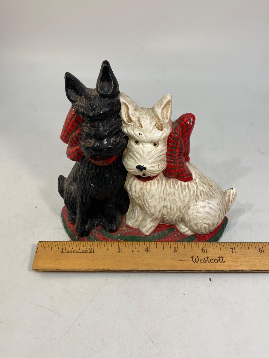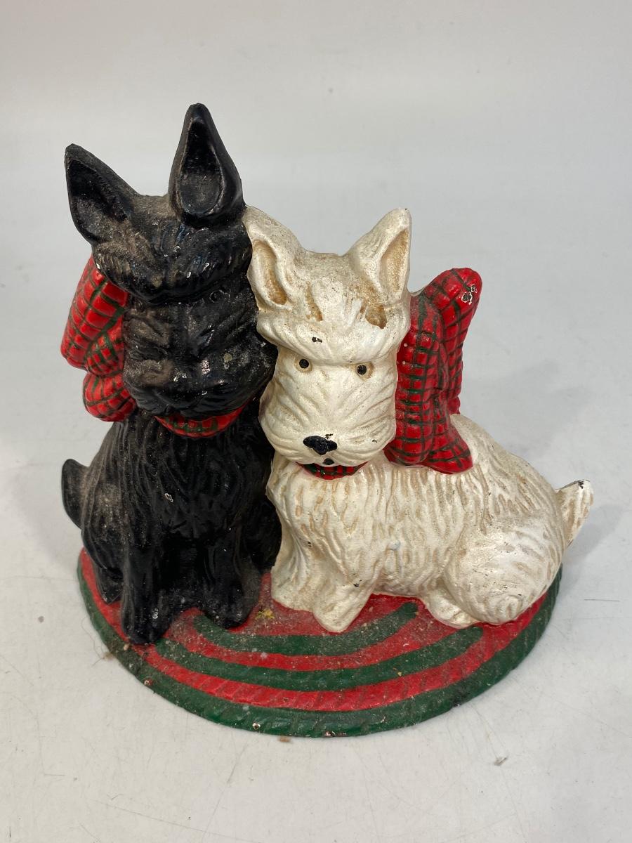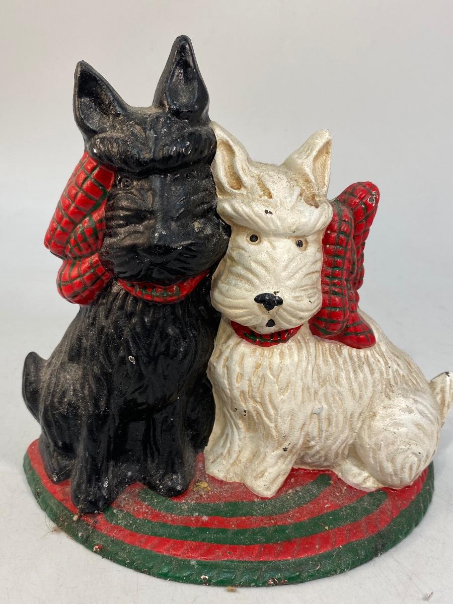 Vintage Heavy Painted Cast Iron Scottie Dog Doorstop. Needs to be cleaned. Light wear to paint from age and use.