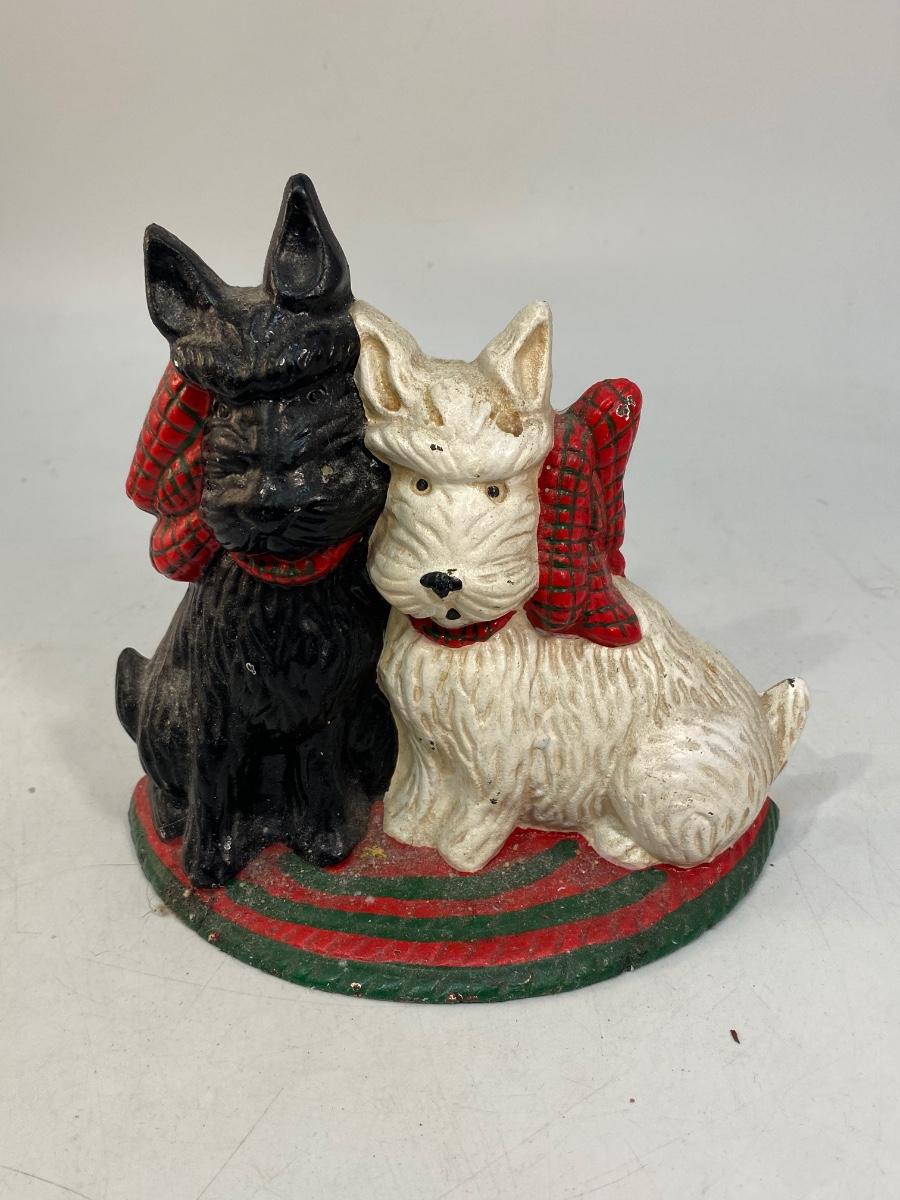 Vintage Heavy Painted Cast Iron Scottie Dog Doorstop
